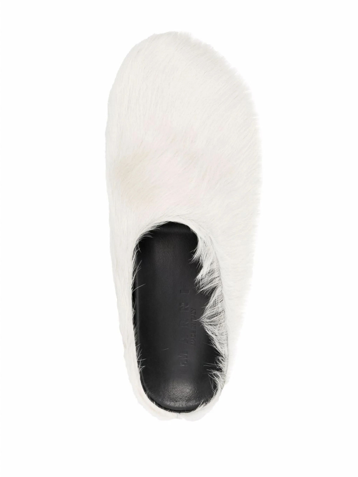 Suola piatta in gomma piatta senza schienale stile slip-on con finitura testurizzata e punta tonda in pelo di vitello bianco