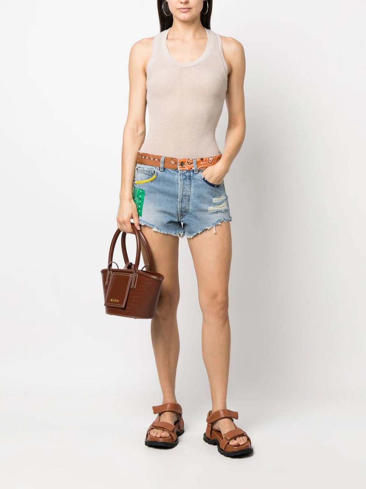 ALANUI: pantaloni shorts - Shorts in denim con stampa bandana california