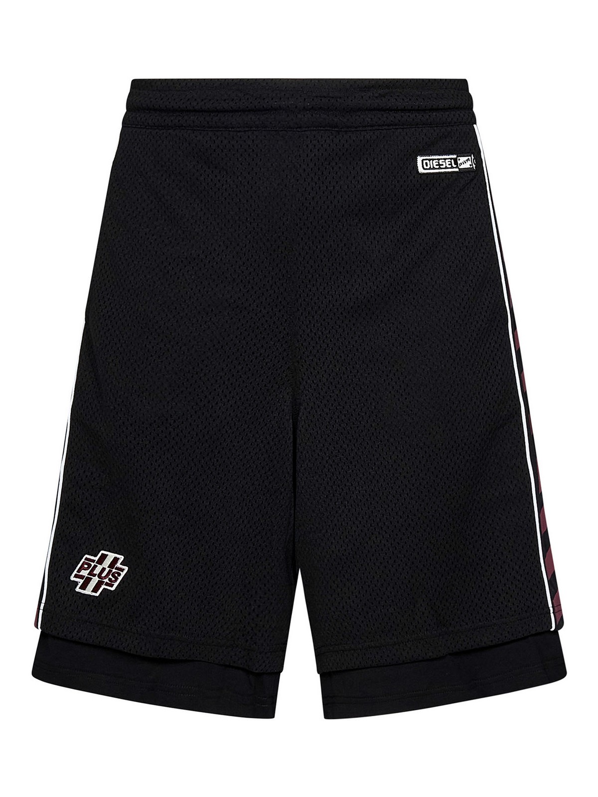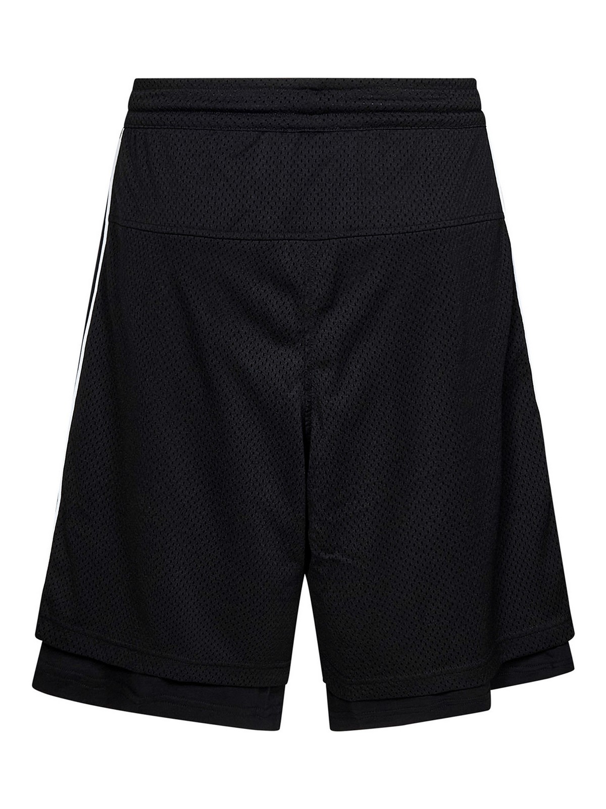 Vita elasticizzata con coulisse interna tasche laterali carrè posteriore bande laterali in jersey con profili profilati e stampe gommate toppe ricamate doppio fondo al ginocchio foderato in poliestere nero l'articolo in foto corrisponde ad una taglia m