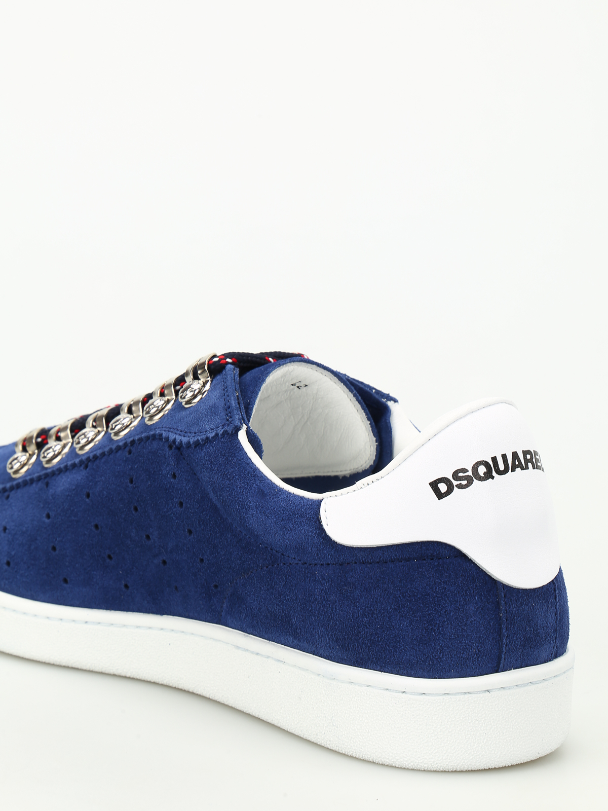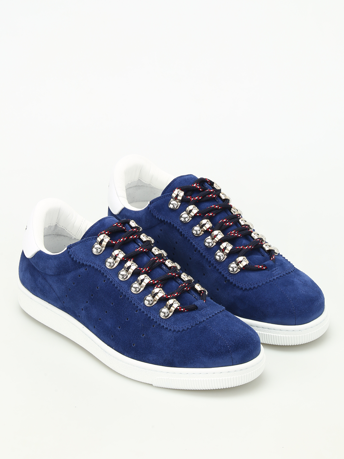 Sneaker in camoscio con forature sui lati, iconica foglia d'acero a rilievo sugli occhielli in metallo, inserto al tallone in pelle con logo stampato e suola in gomma a contrasto.