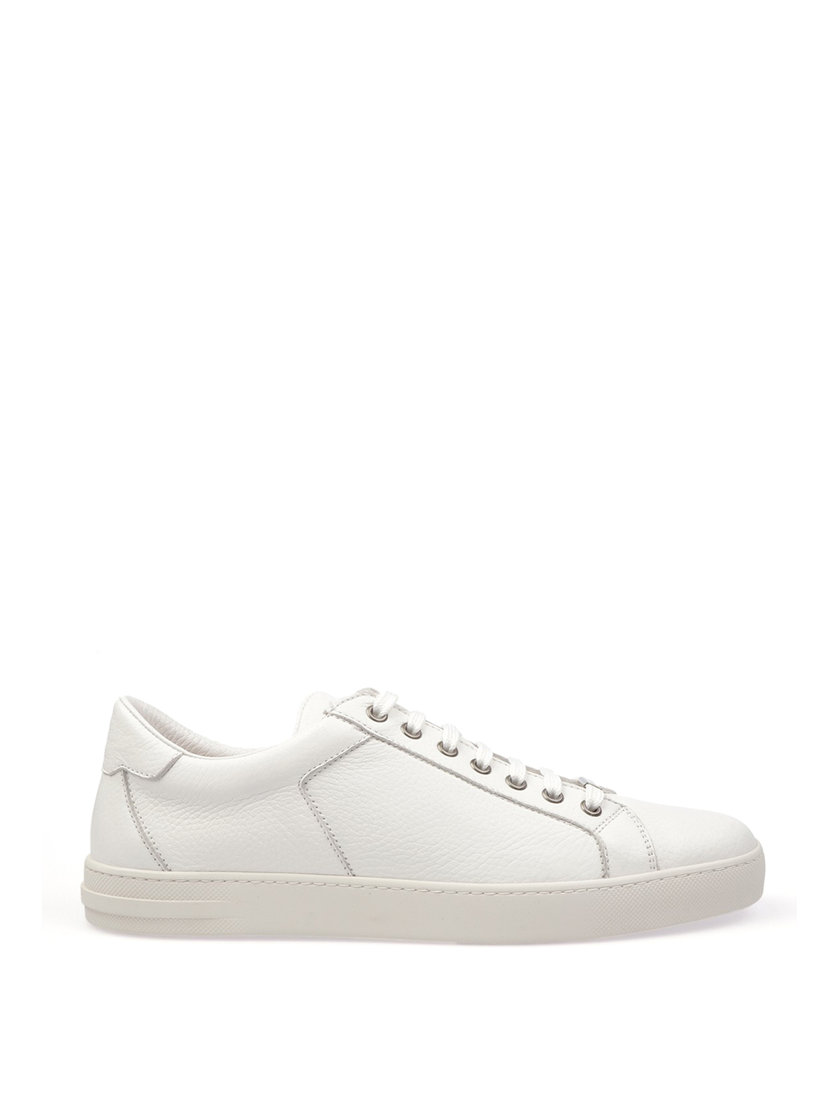 Sneaker in pelle martellata con punta tonda e chiusura con stringhe.
