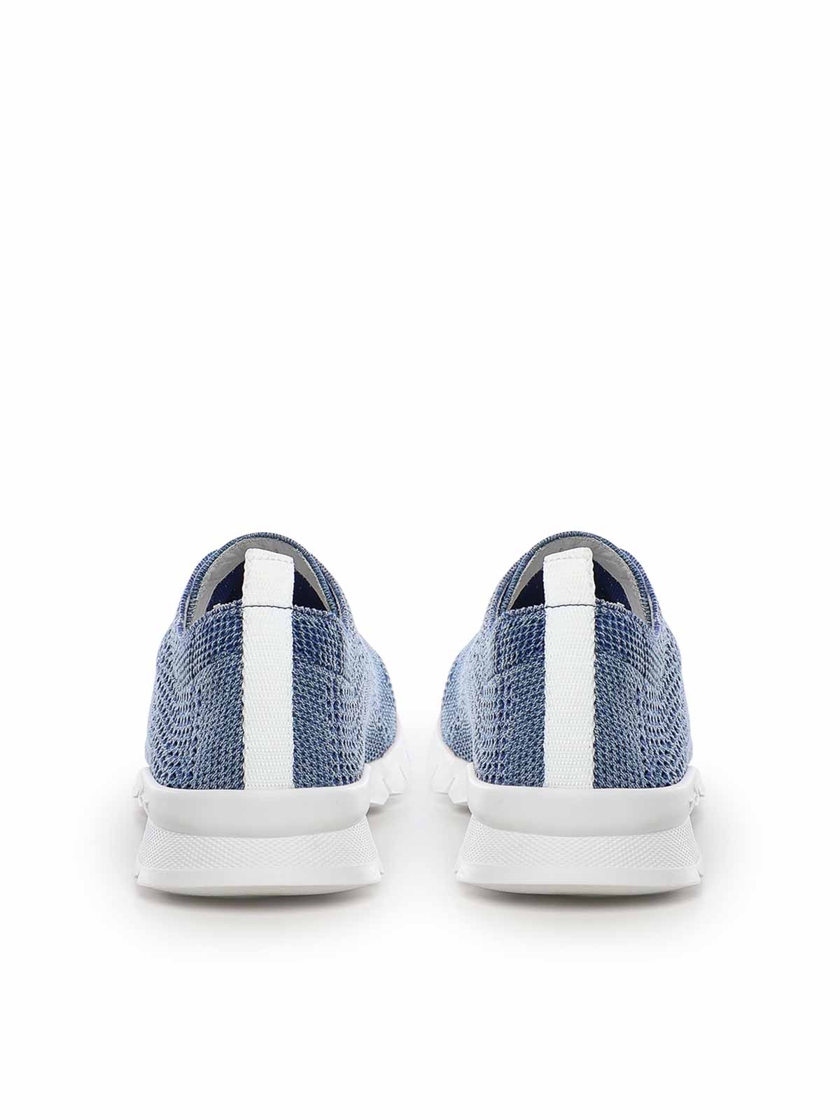 tomaia in tessuto a maglia, chiusura con lacci, suola in gomma, punta tonda, dettagli logo, made in Italy, colore designer: jeans