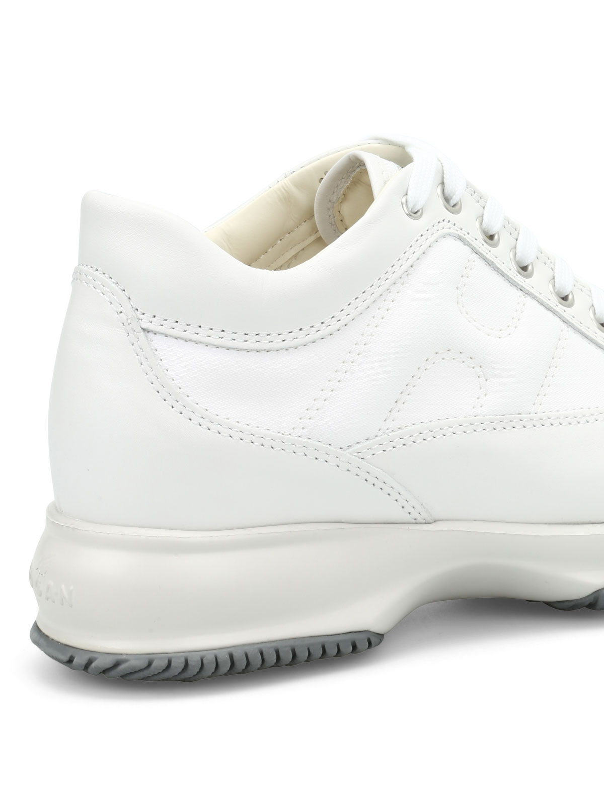 Sneaker in tessuto e pelle, H laterale imbottita con impunture tono su tono. Rialzo interno, suola alta sagomata in gomma. Etichetta logo su linguetta. Logo a rilievo sul tallone.