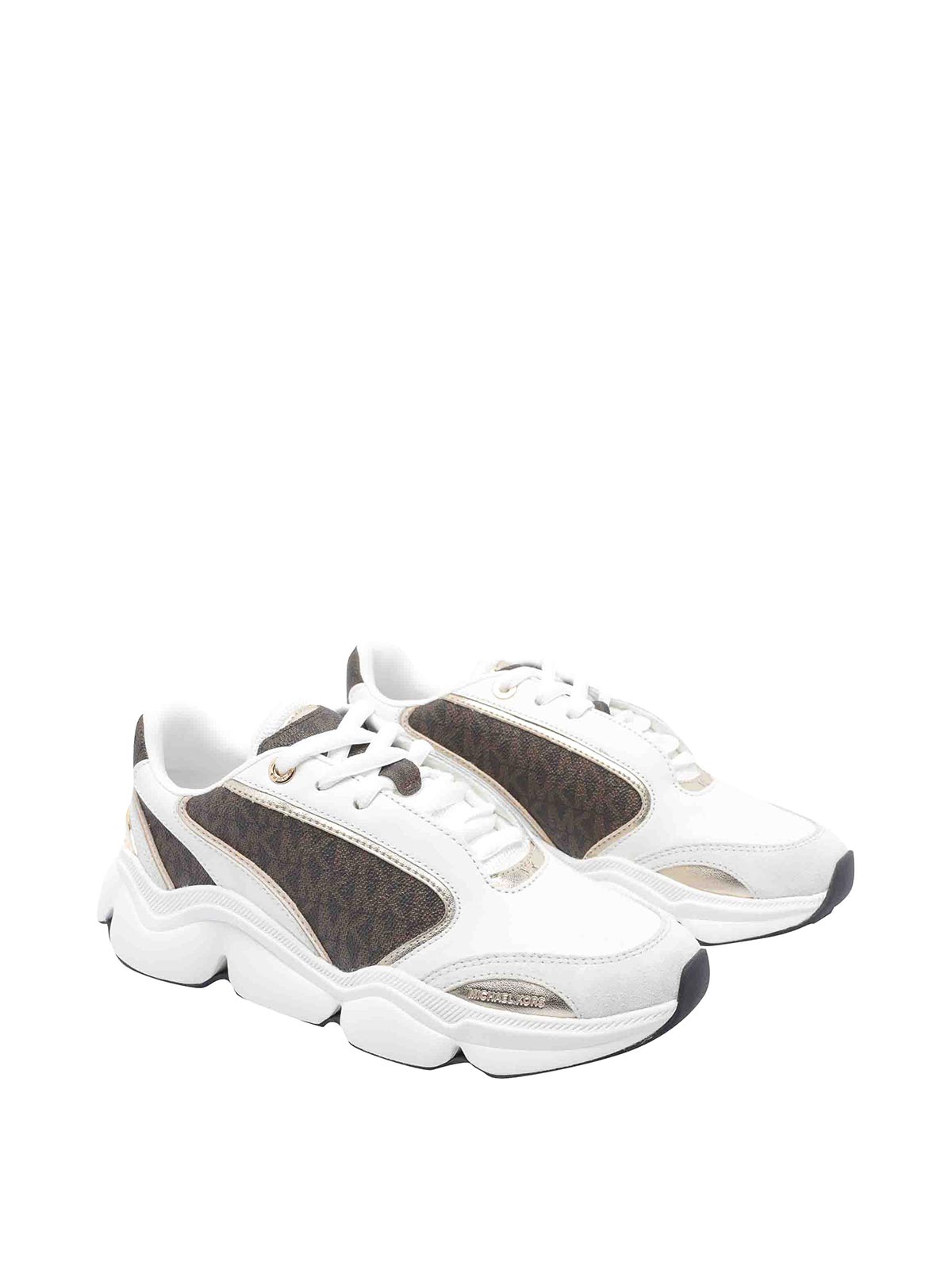 Michael Michael Kors White e Brown Renny Sneaker Round Toe Logo allover