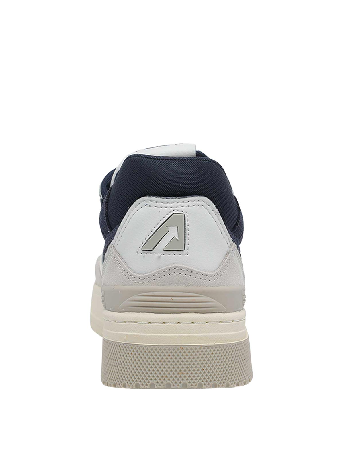 Sneakers clc bianche e blu Autry, chiusura con lacci, punta tonda, tomaia in pelle e camoscio, logo laterale