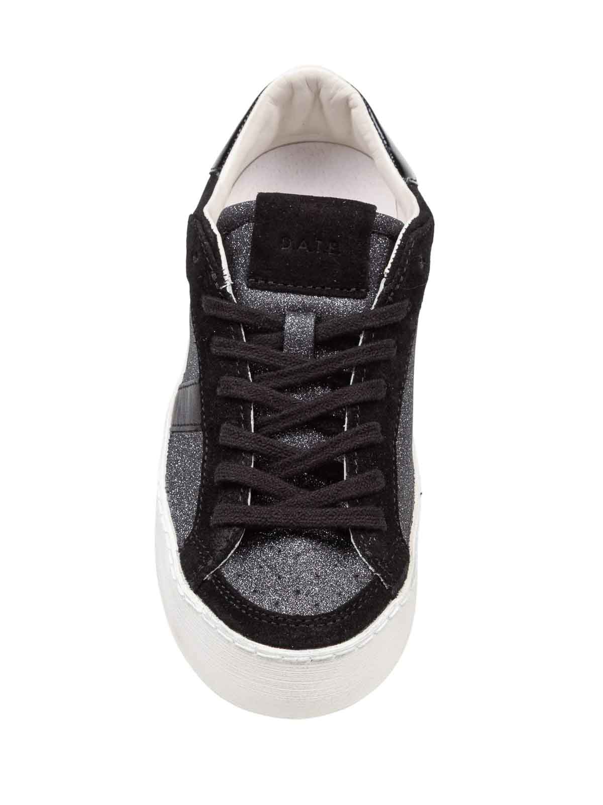 Sneakers bassa in glitter linguetta e patch con impressa la scritta d a t e lacci logo quadrato ricamato lateralmente banda laterale nero talloncino posteriore in vernice colore nero e spugna di tta interna rialzata di per un miglior comfort liscia con lettering alta tutti i materiali selezionati sono vestibilita' regular made in vietnam