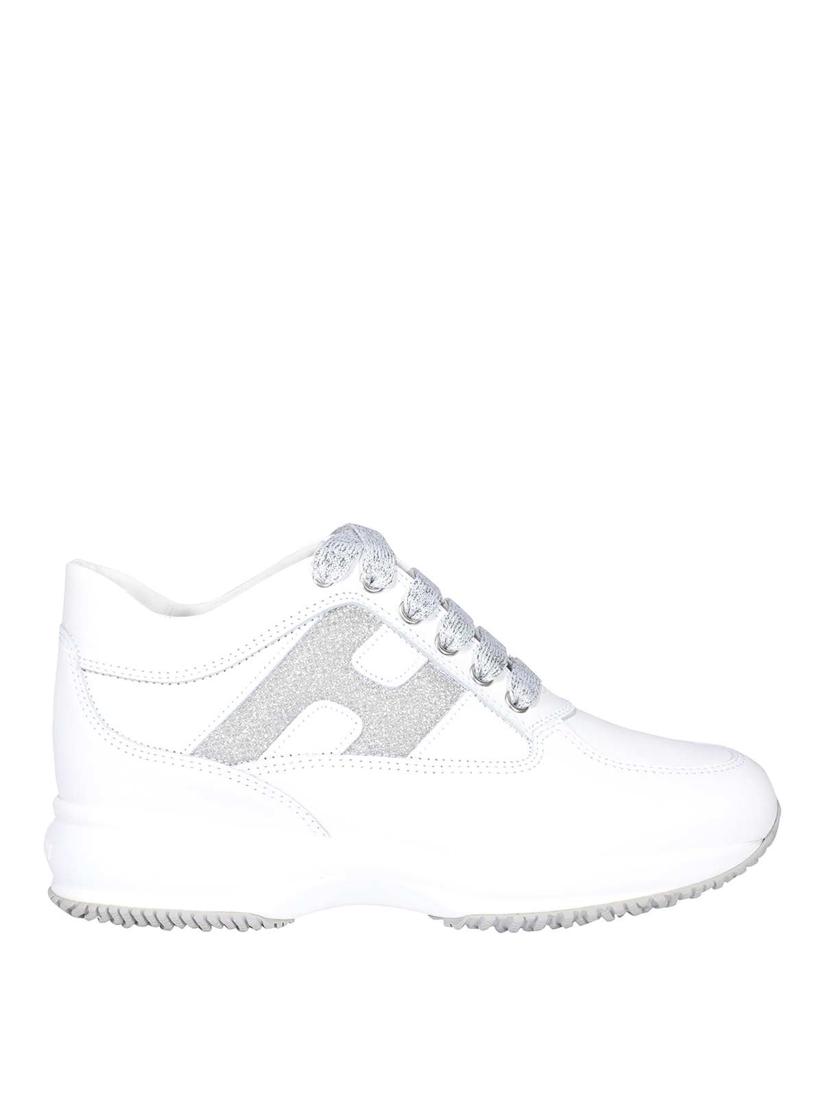 Sneakers in pelle liscia con logo impunturato e glitterato.