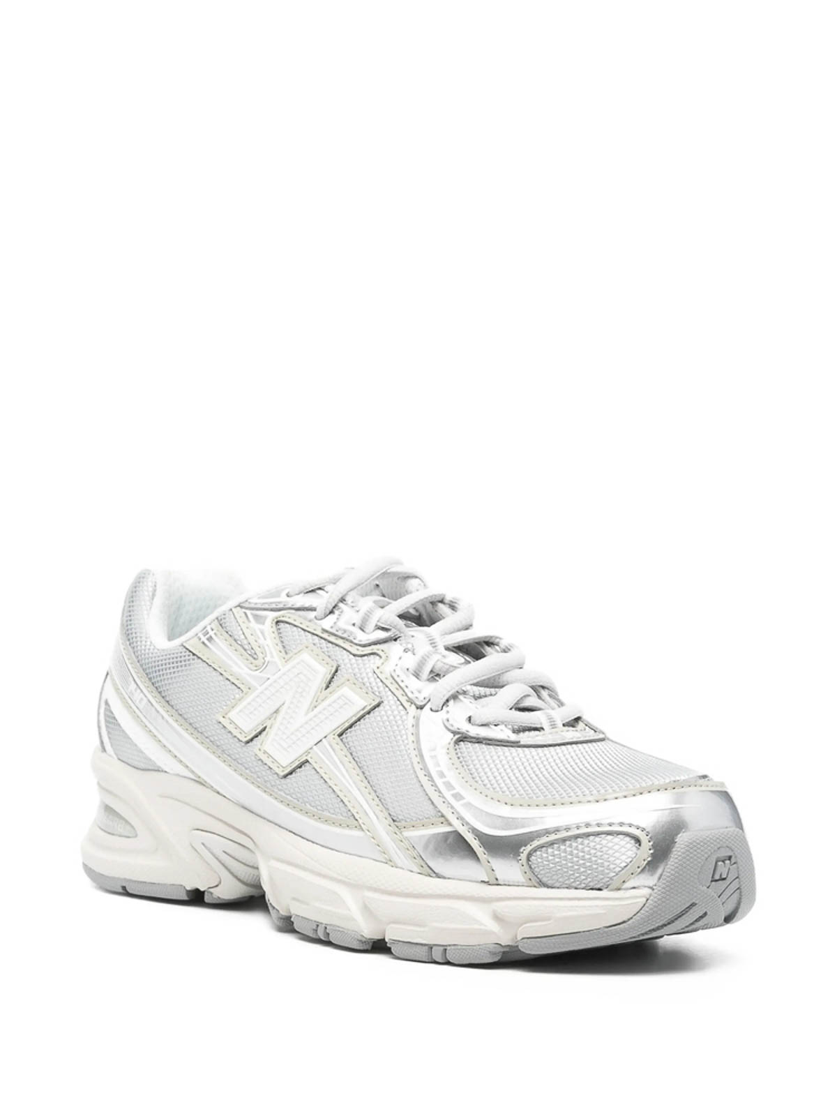Dettagli logo grigio pannelli in rete chiusura con lacci suola in gomma battistrada