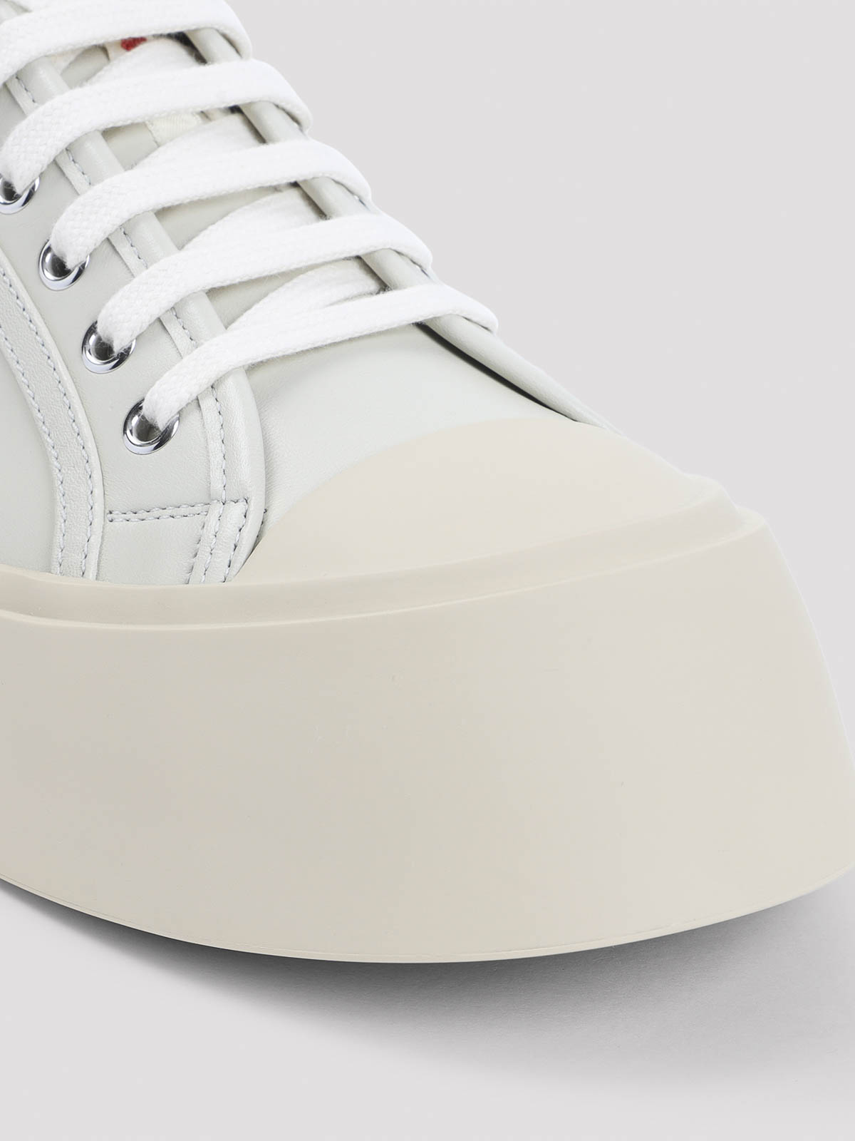 Sneaker Marni Pablo in pelle di vitello grigia. realizzato in pelle di vitello grigio chiaro, punta tonda con inserto in gomma, chiusura con lacci, logo ricamato sulla linguetta, fodera e sottopiede in pelle, suola spessa in gomma con logo sul retro.