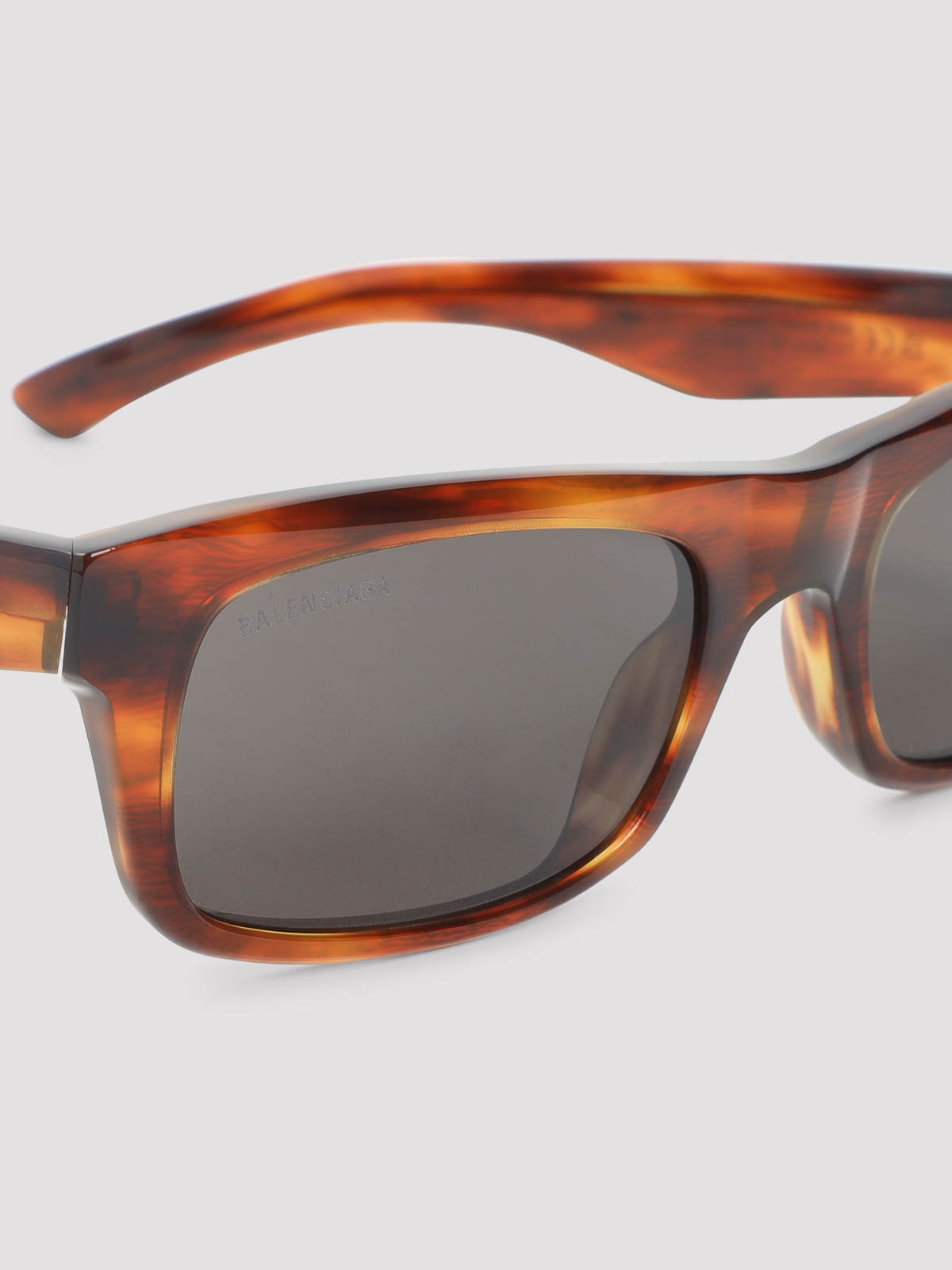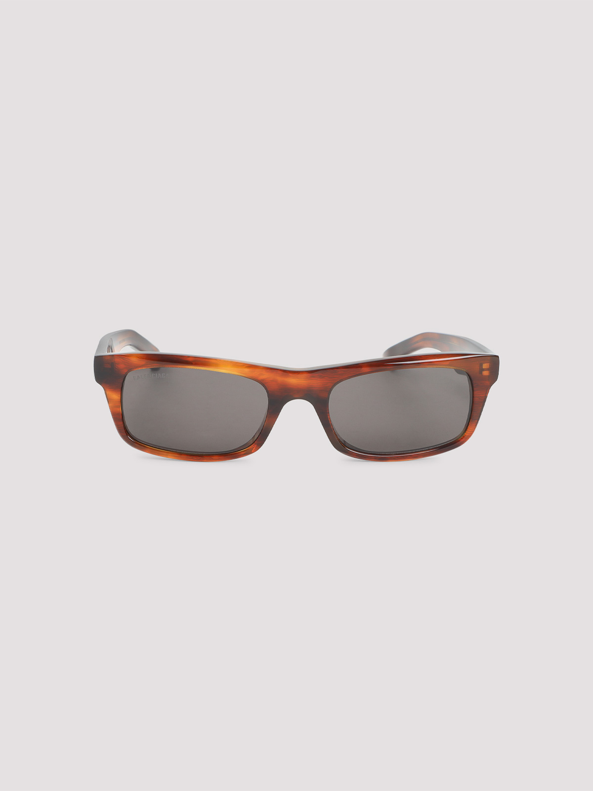 Balenciaga Brown Havana acetato di occhiali da sole rettangolo di rettangolo. Occhiali da sole acetato di acetato di Havana marrone puro, cornici quadrate, lenti grigie per fumo, templi tonali.