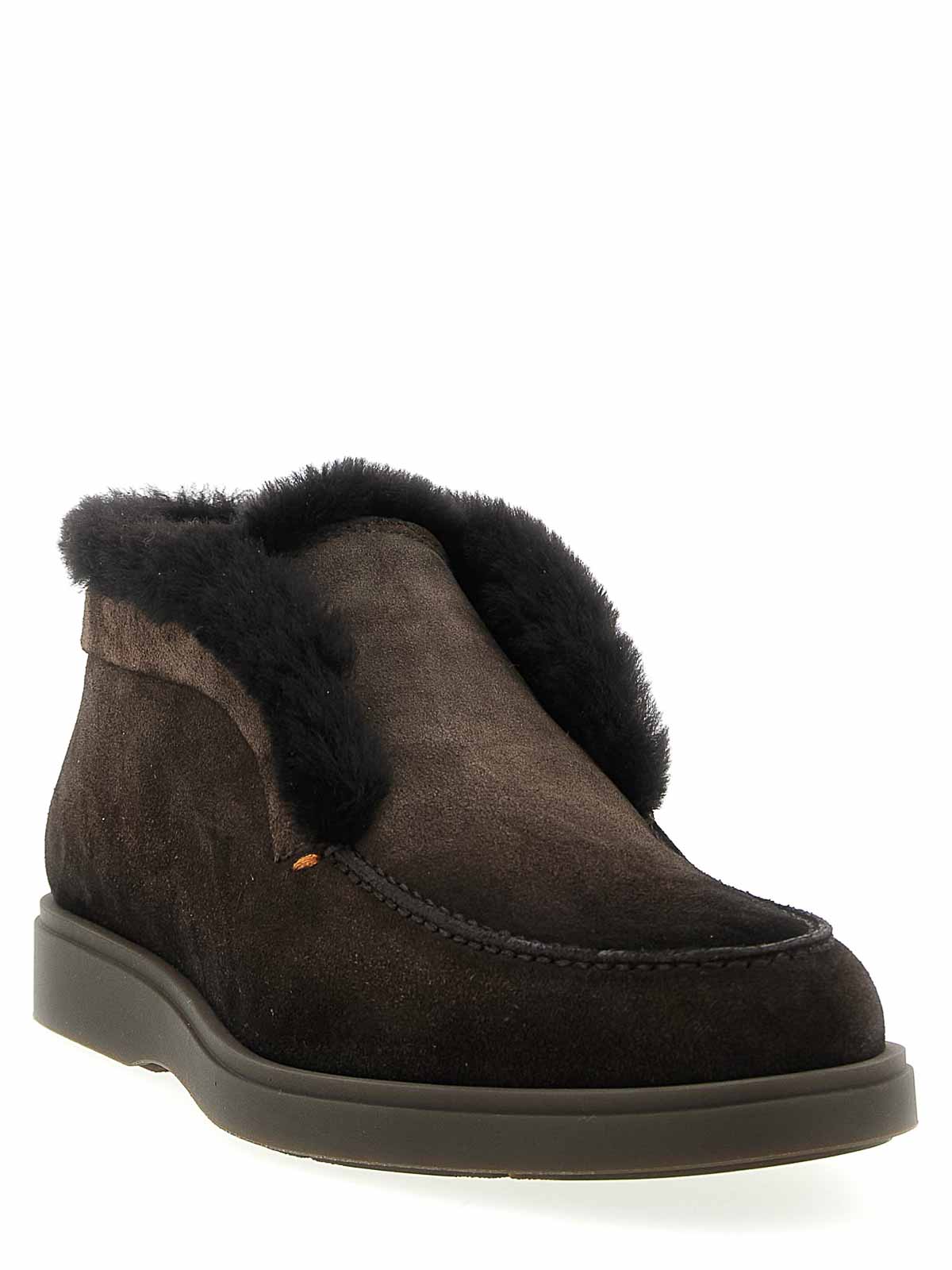 Stivaletti in camoscio effetto degradé 'dragon', modello slip-one, fodera in shearling, suola in gomma.