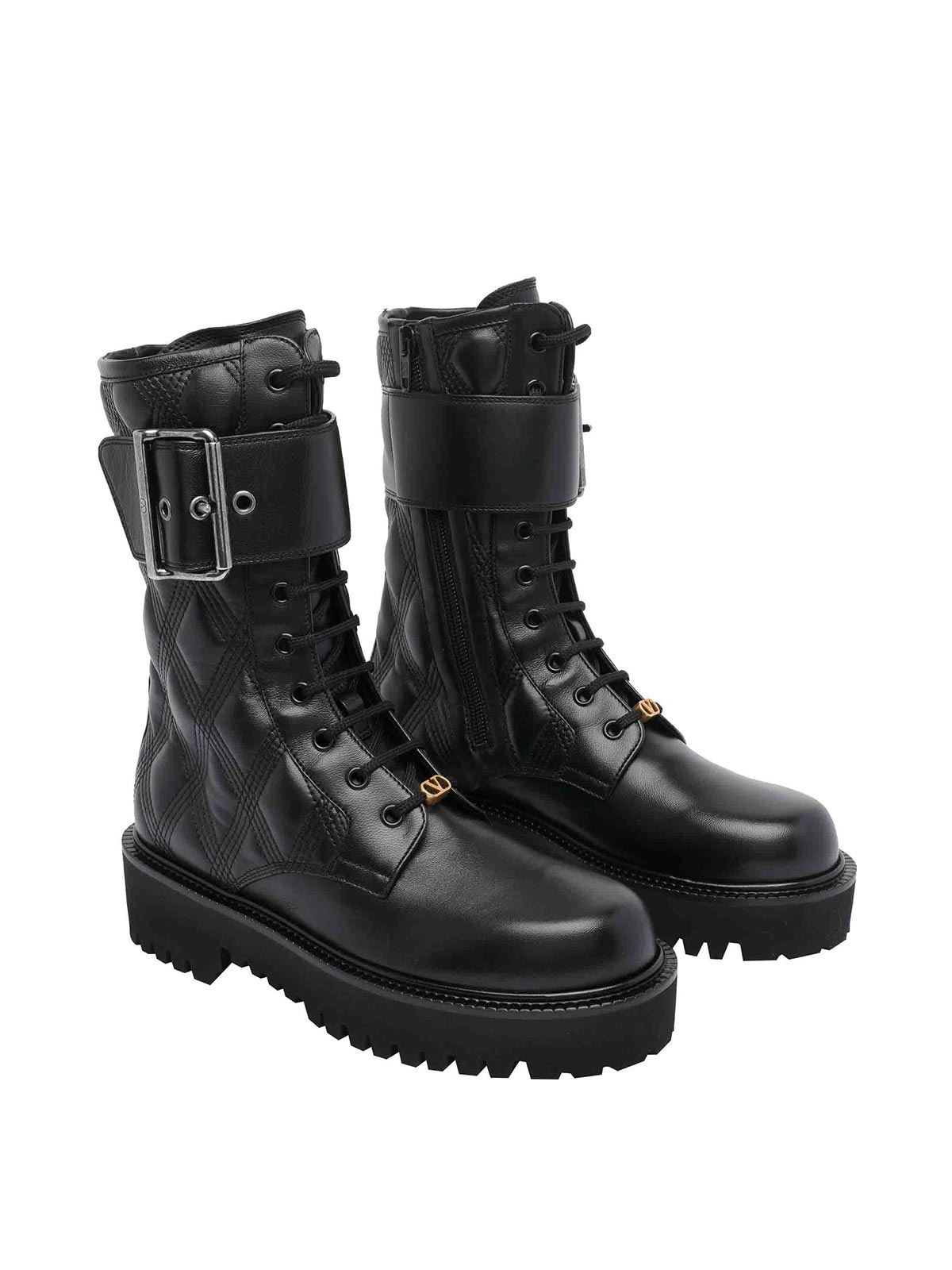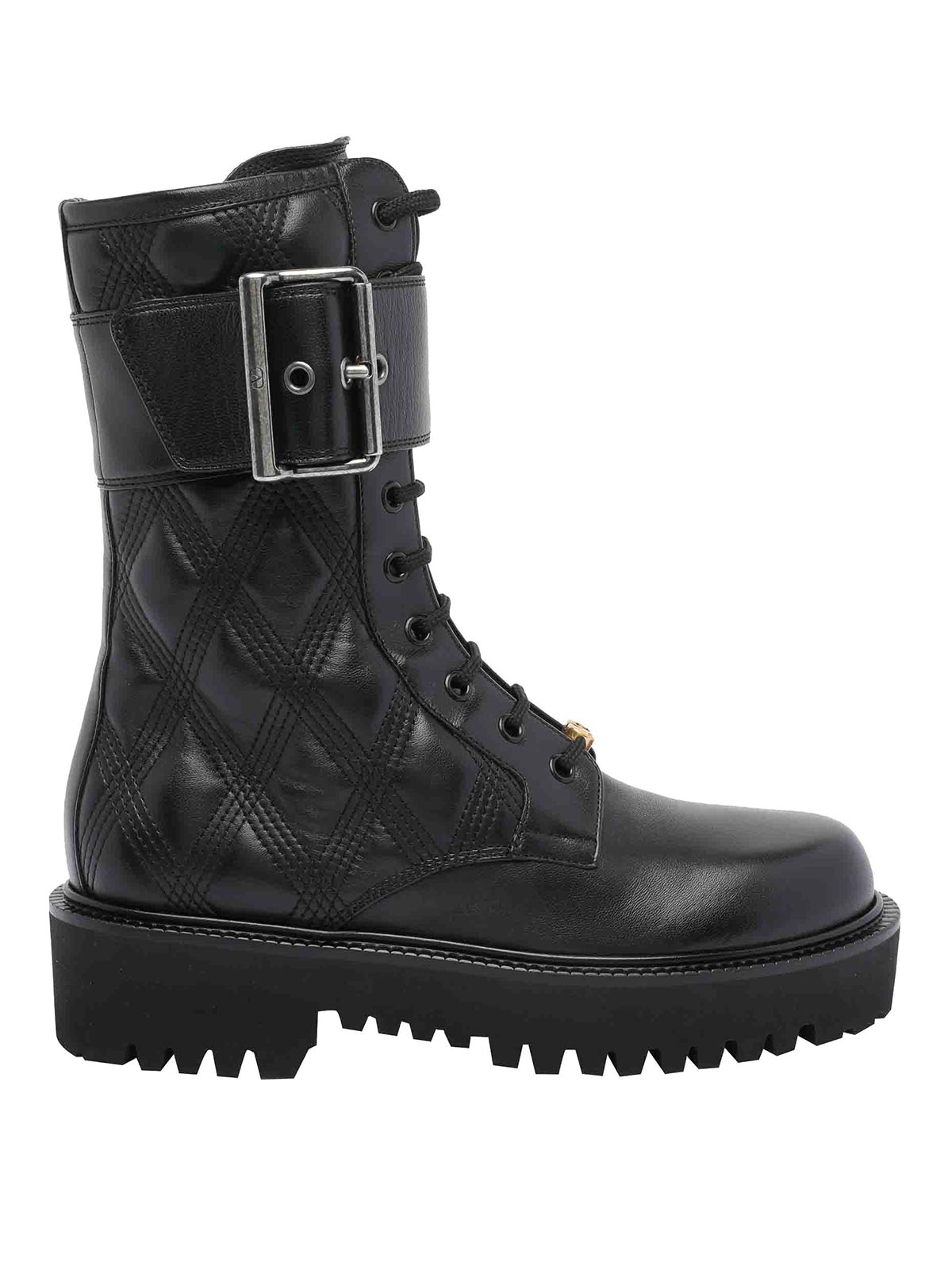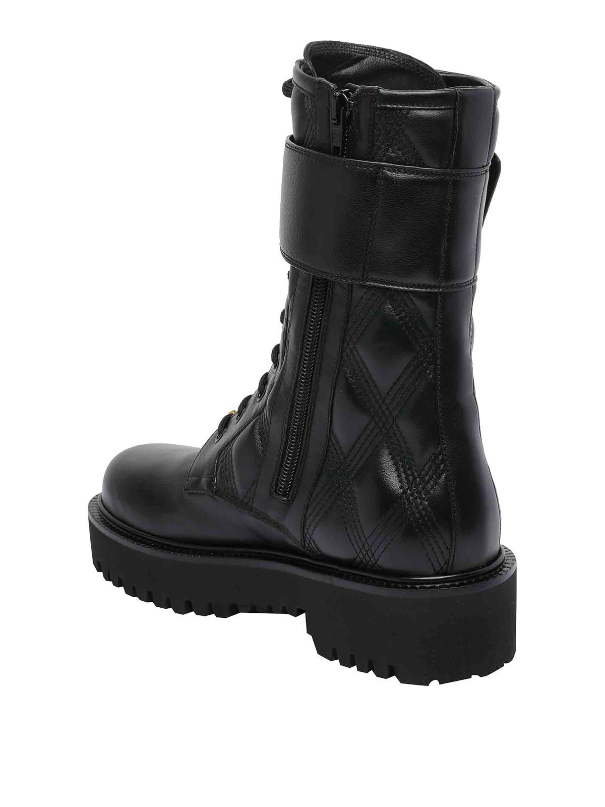 Valentino Garavani Black Valentino Combat Booties Round Toe Modello trapuntato Laces laterale