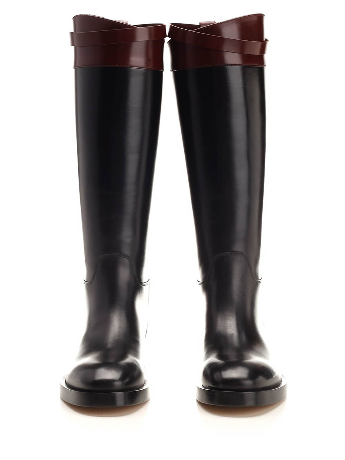 Stivali in pelle spazzolati neri e in mogano di Durazzi Milano.