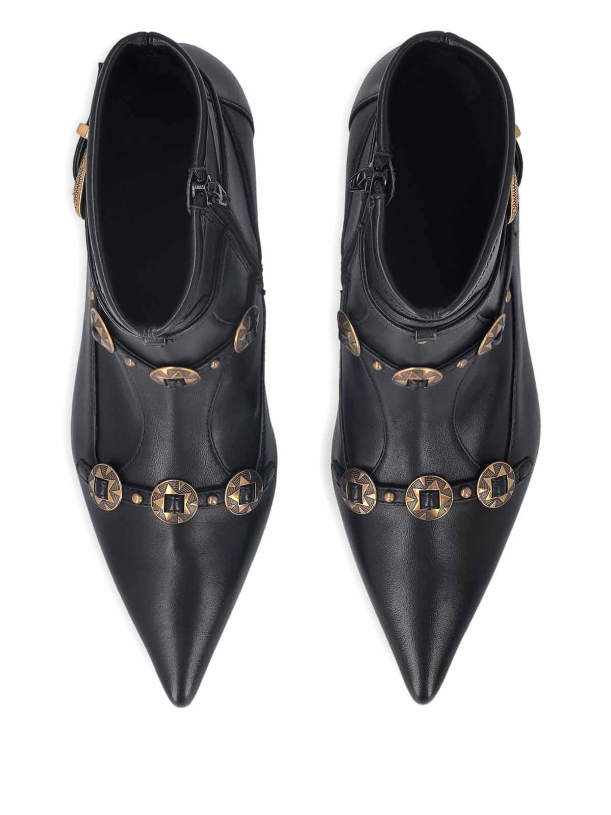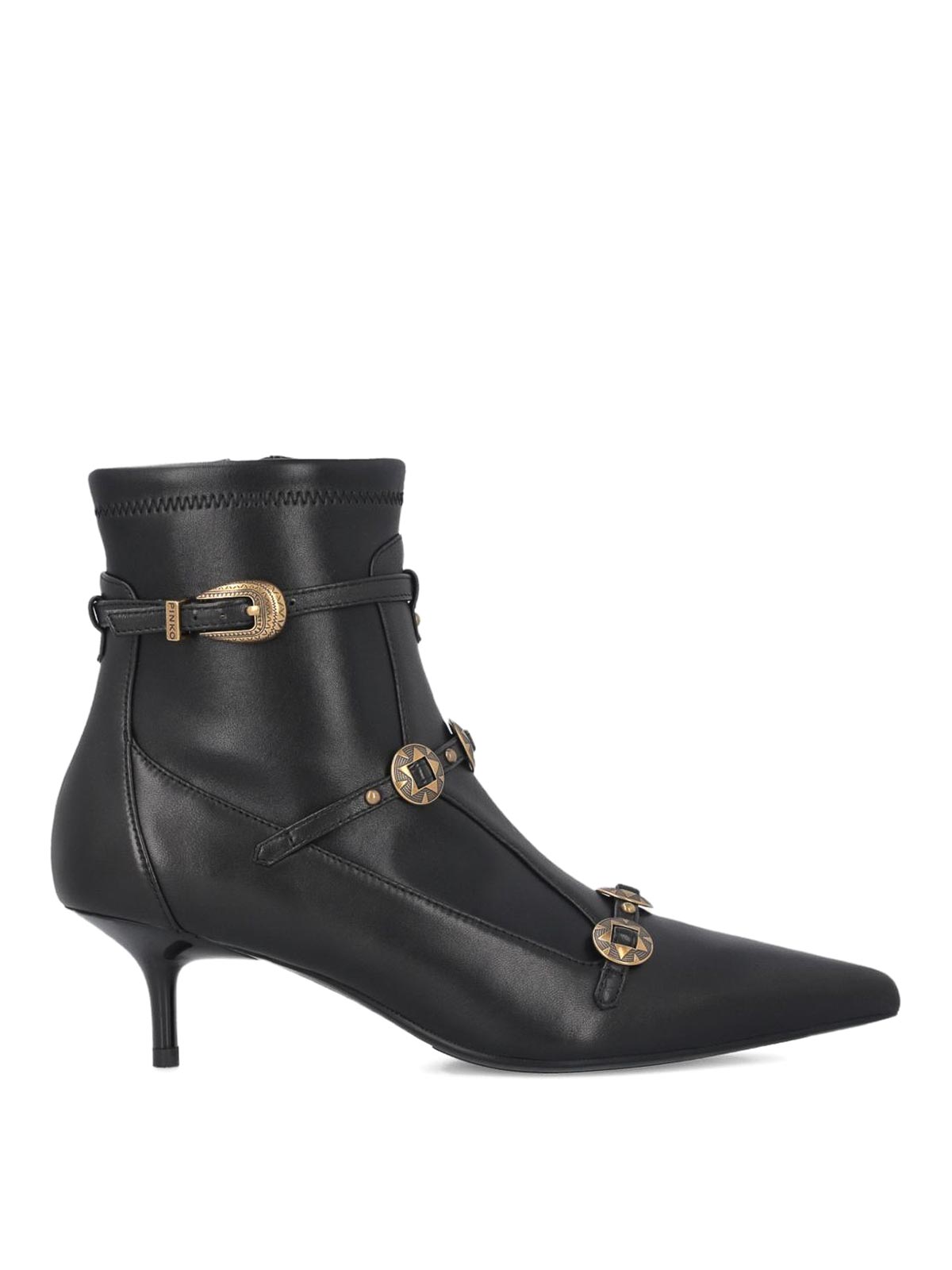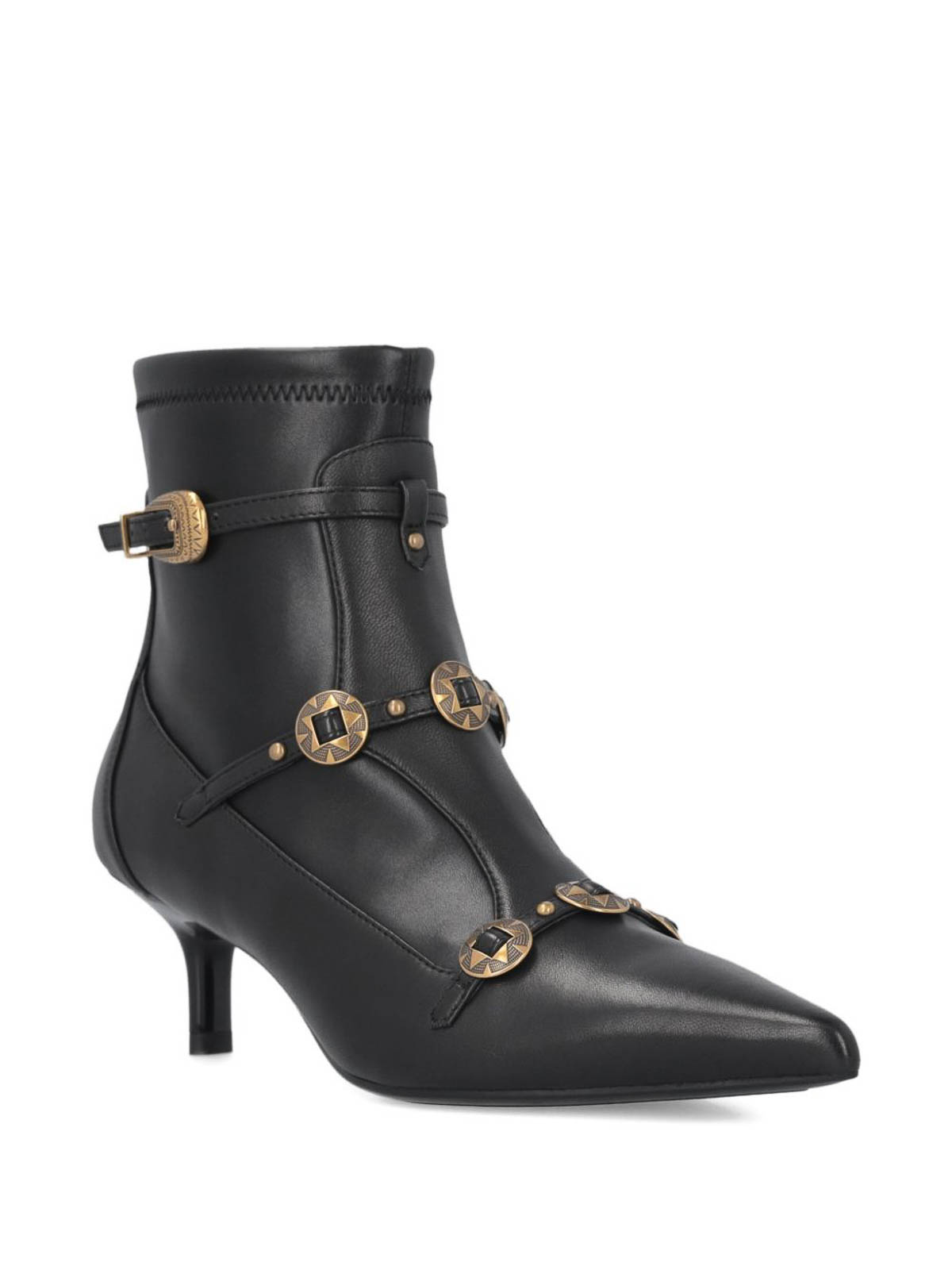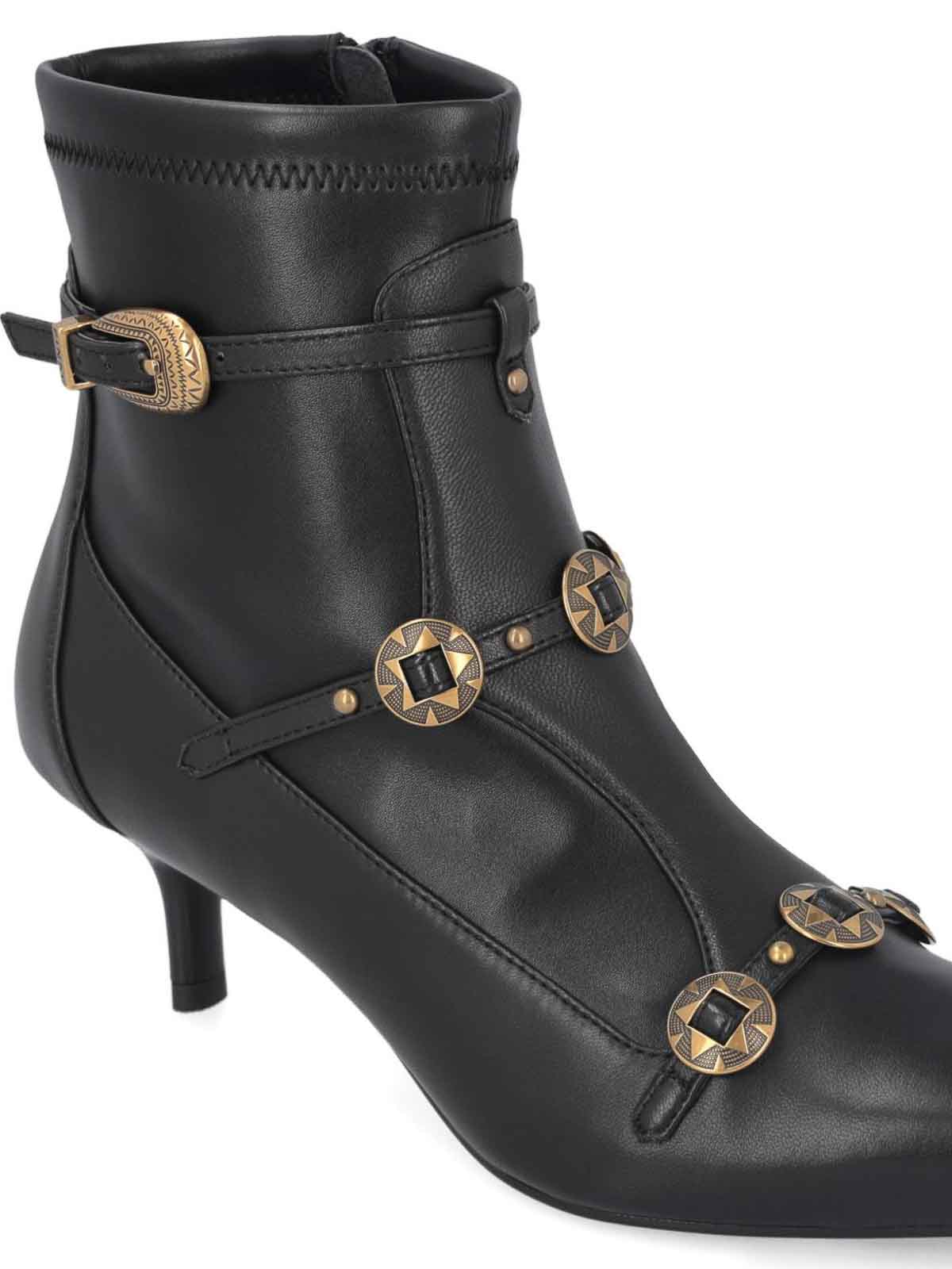 Black buckle, tone embellishment pointed toe stiletto side zip