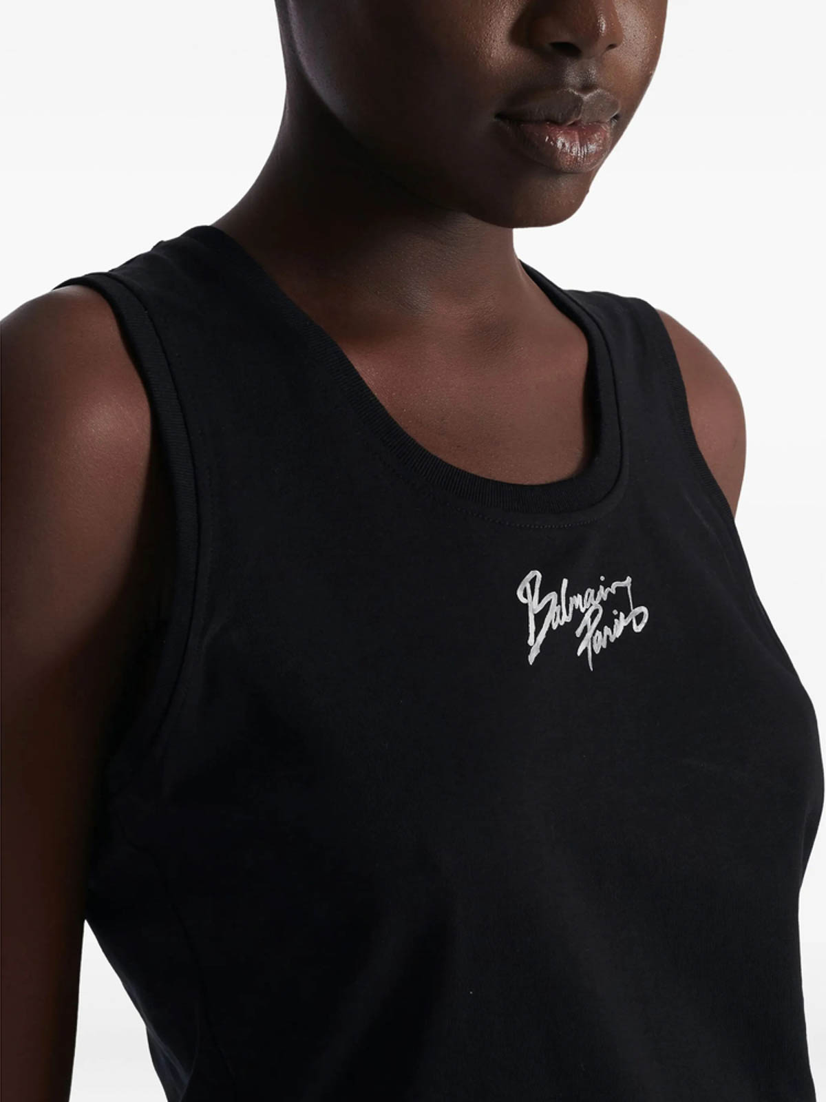 Girocollo senza maniche in cotone nero con stampa brush