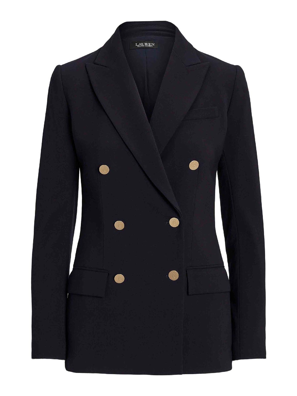 Lauren ralph lauren giacca con revers a lancia. silhouette a doppio petto. maniche lunghe con quattro bottoni ai polsi. spalline imbottite. due tasche a patta in vita sul davanti. tasca di sbieco sul lato sinistro del torace. pieghe in vita sul davanti. cuciture a punto principessa davanti e dietro. interamente foderato, articolo prodotto al 98% con lana certificata rws da bureau veritas.