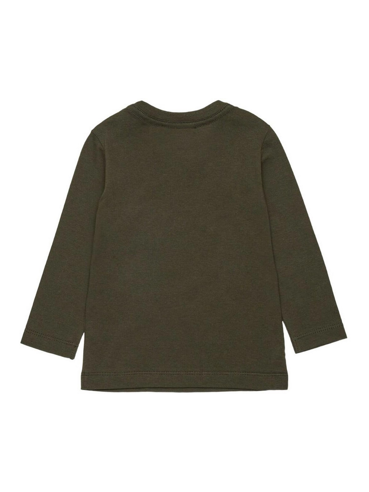 T-shirt con logo caratteristiche verde scuro con bottoni a pressione sulla spalla girocollo maniche lunghe orlo dritto