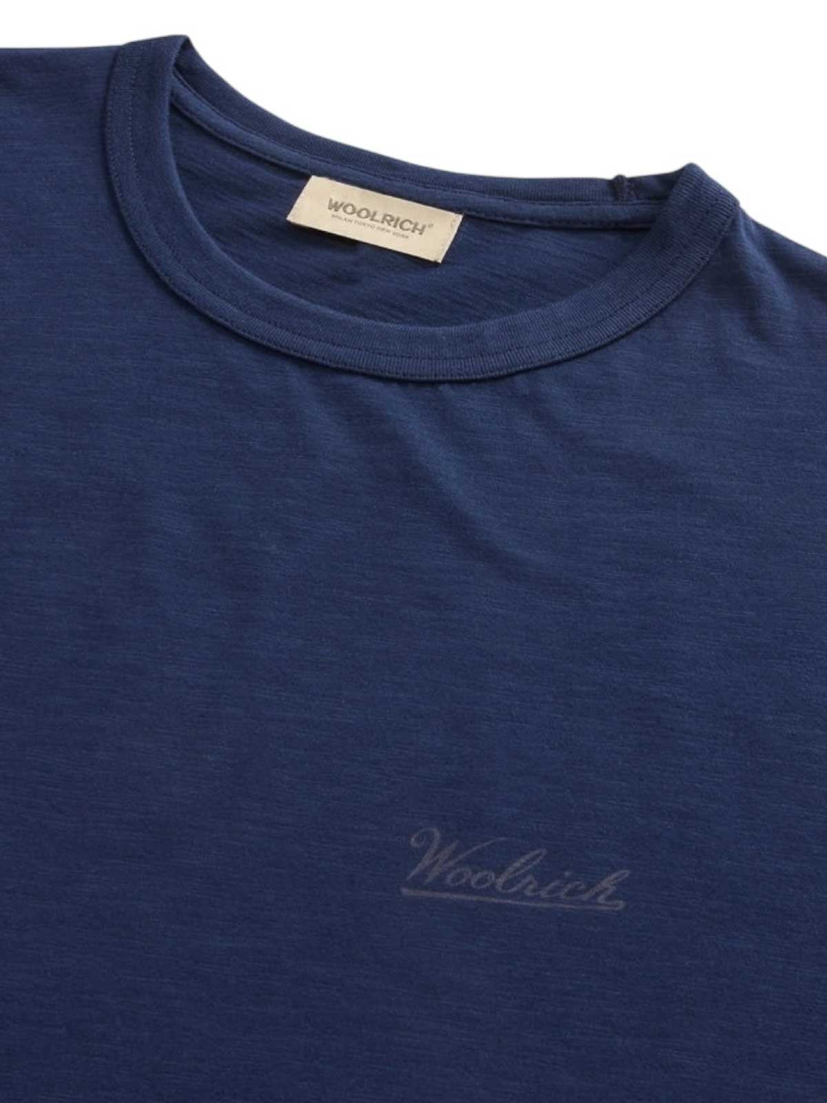 WOOLRICH: t-shirt - T-Shirt In Puro Cotone Fiammato Blu