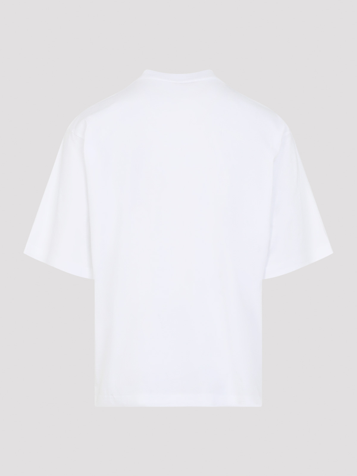 T-shirt Marni giglio in cotone bianco. T-shirt in puro cotone bianco, girocollo, fantasia logo multicolor frontale, maniche corte, fondo dritto.