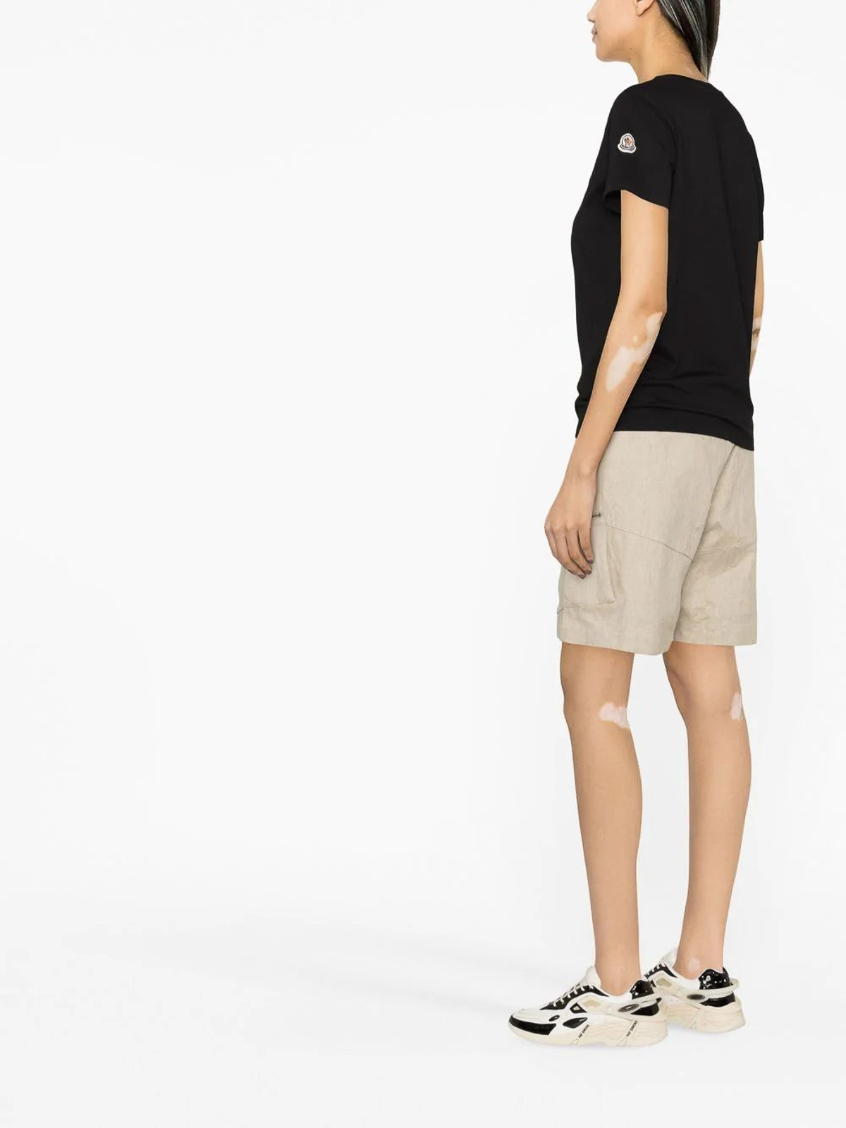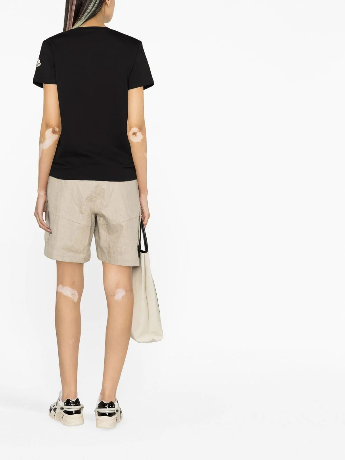 Moncler mette in mostra la sua ispirazione sportswear con questa t-shirt la costruzione in jersey di cotone è applicata con un logo a contrasto che richiama i design varsity anni '90 evidenziando il logo in cotone nero applicato maniche corte girocollo orlo dritto