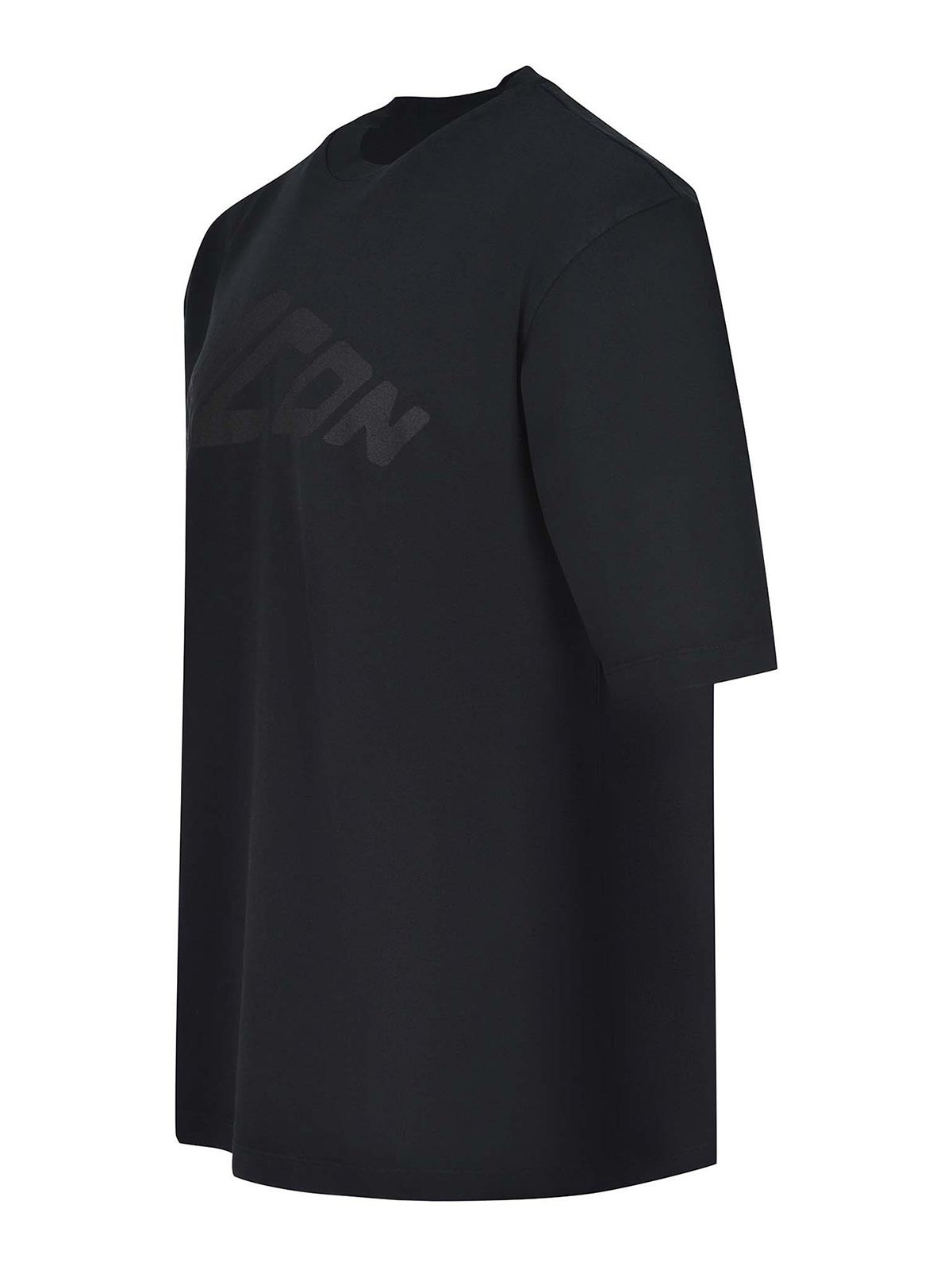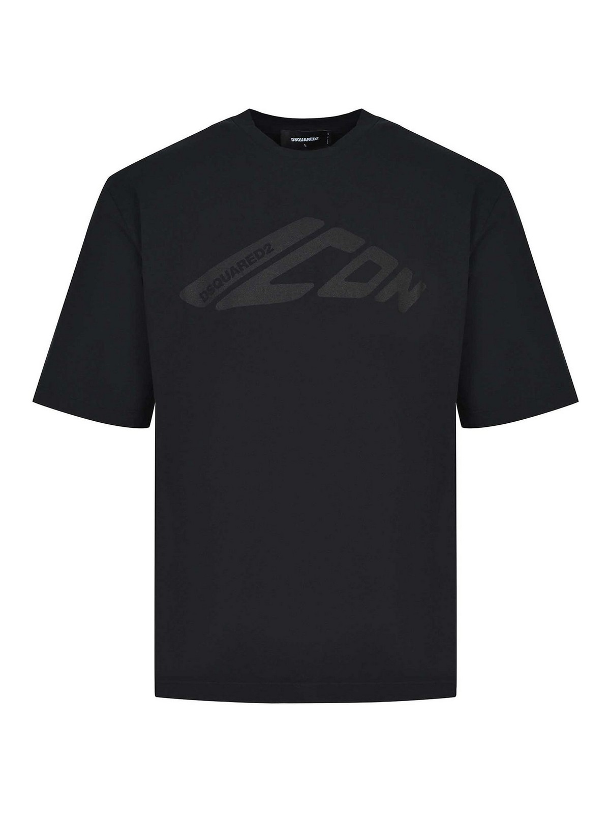 T-shirt Dsquared2 realizzata in cotone nero. girocollo a costine. maniche corte. Scritta 'icon' e lettering logo tono su tono sul petto. 100% cotone prodotto in italia