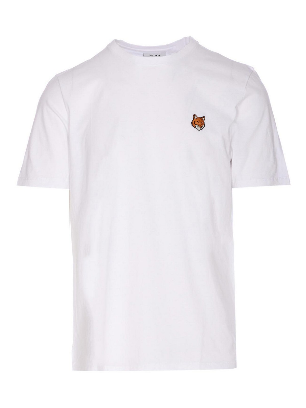 T-shirt regular Maison kitsune' con testa di volpe bianca, girocollo, patch logo sul davanti