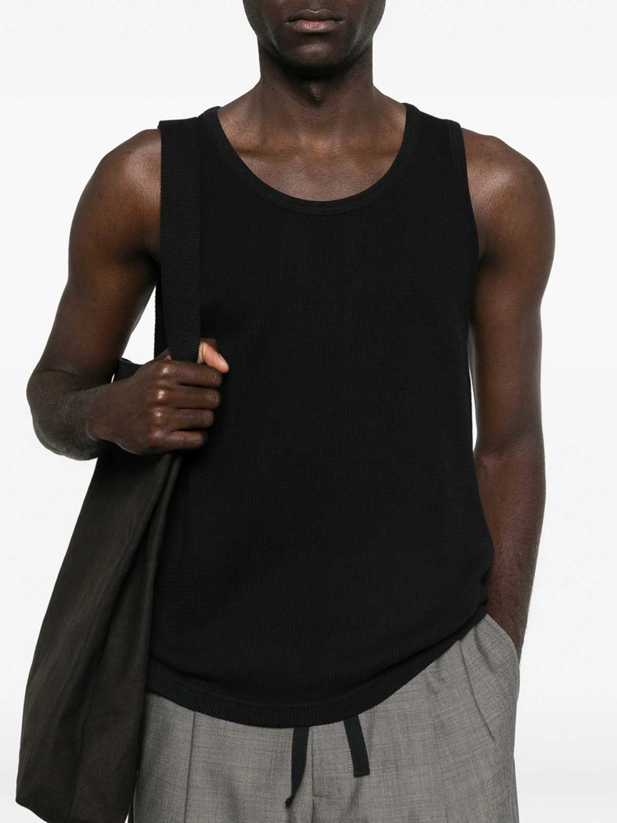 Girocollo senza maniche in maglia a coste nera