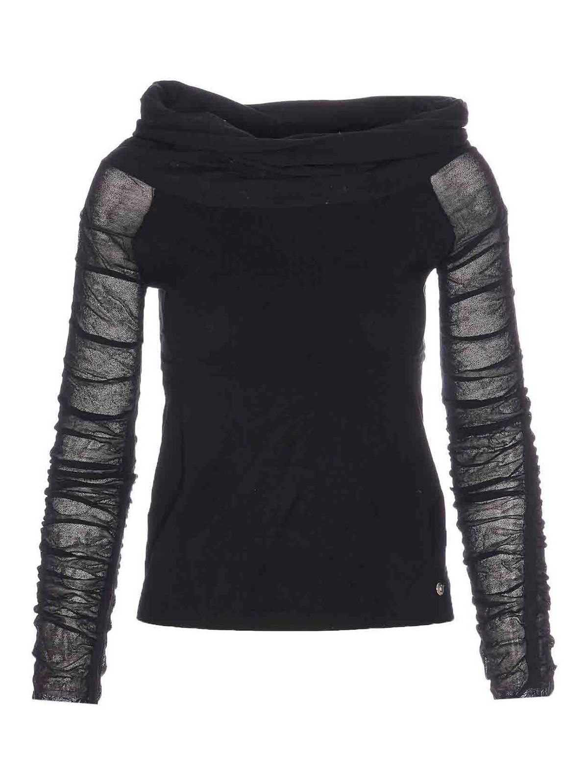 Liu Jo Black Long Maniche a maniche trasparenti in barca.
