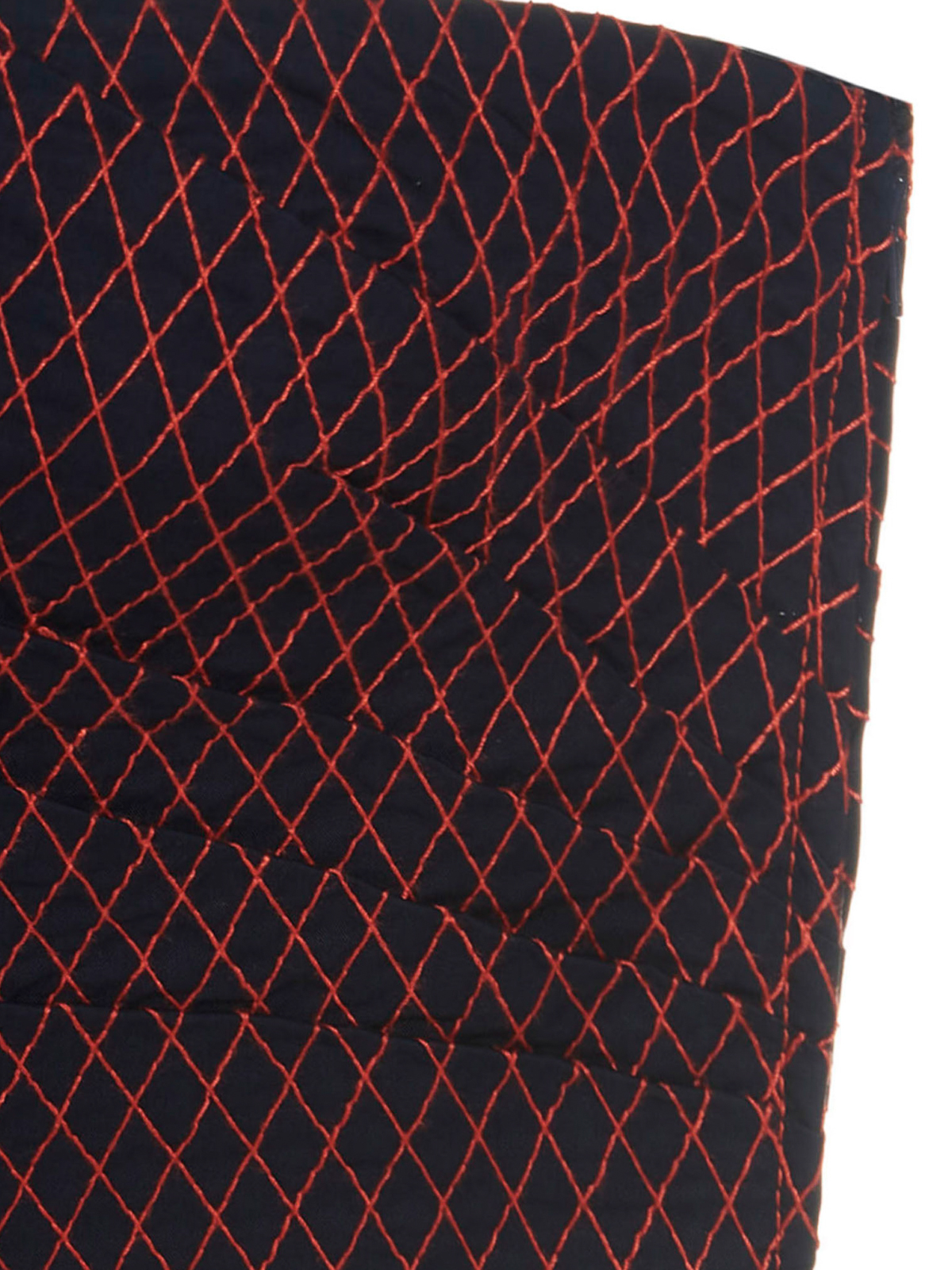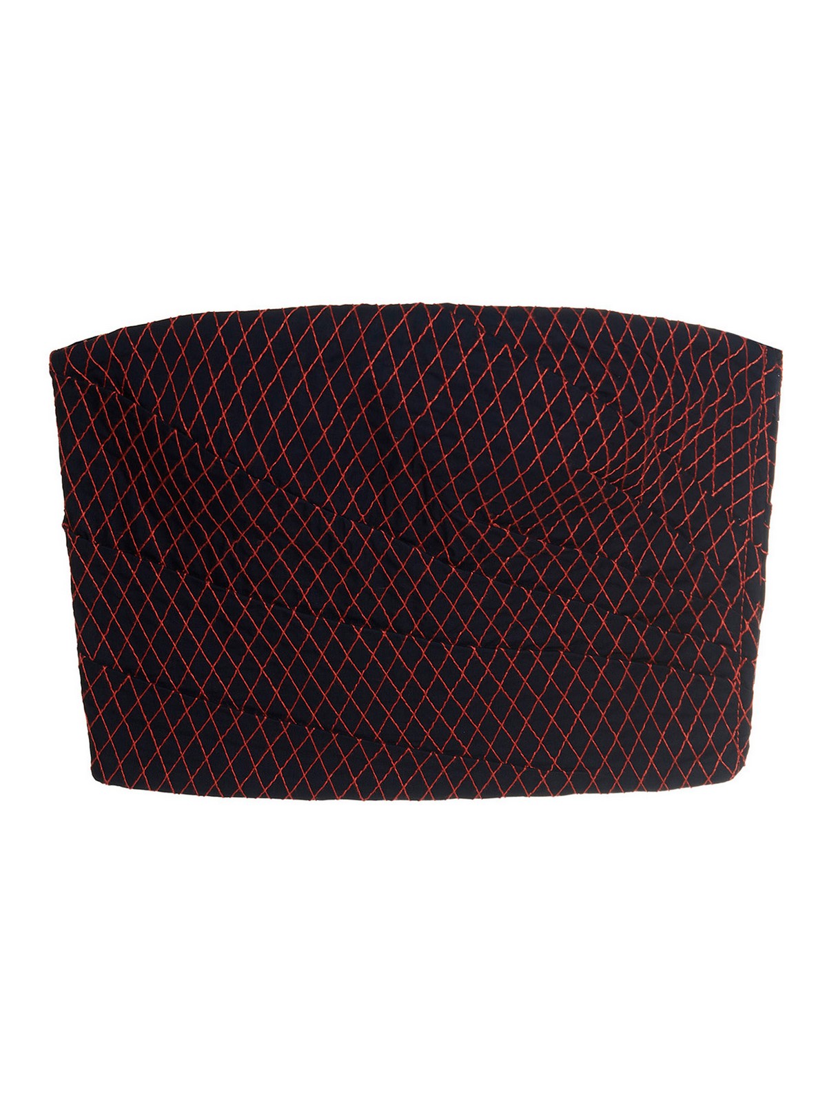 Top in cotone con ferretto e spalle scoperte con cuciture a rombi all over scollo quadrato pieghe frontali e chiusura laterale con zip