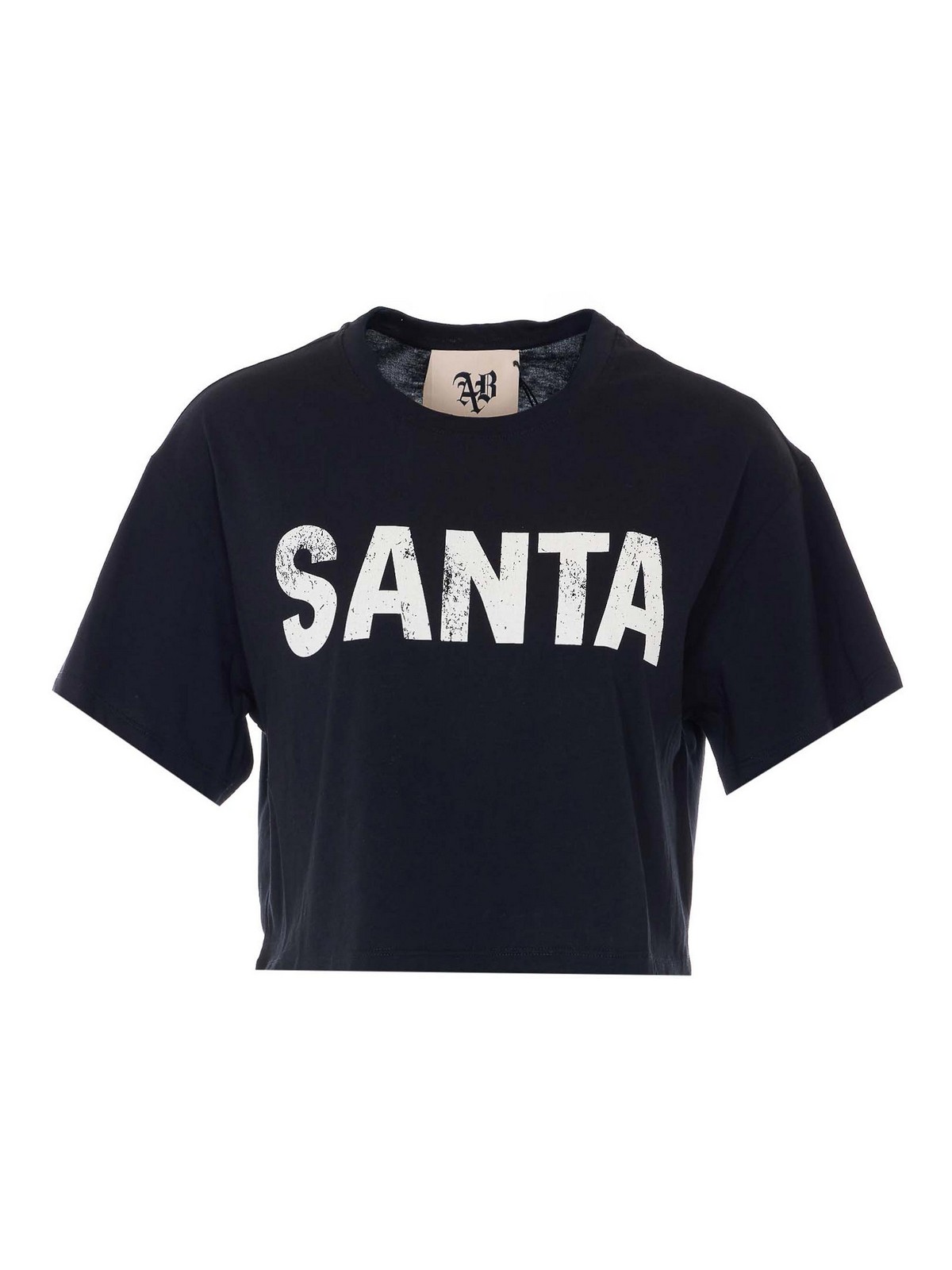 Top nero di Aniye by, stampa sul davanti, girocollo, modello crop