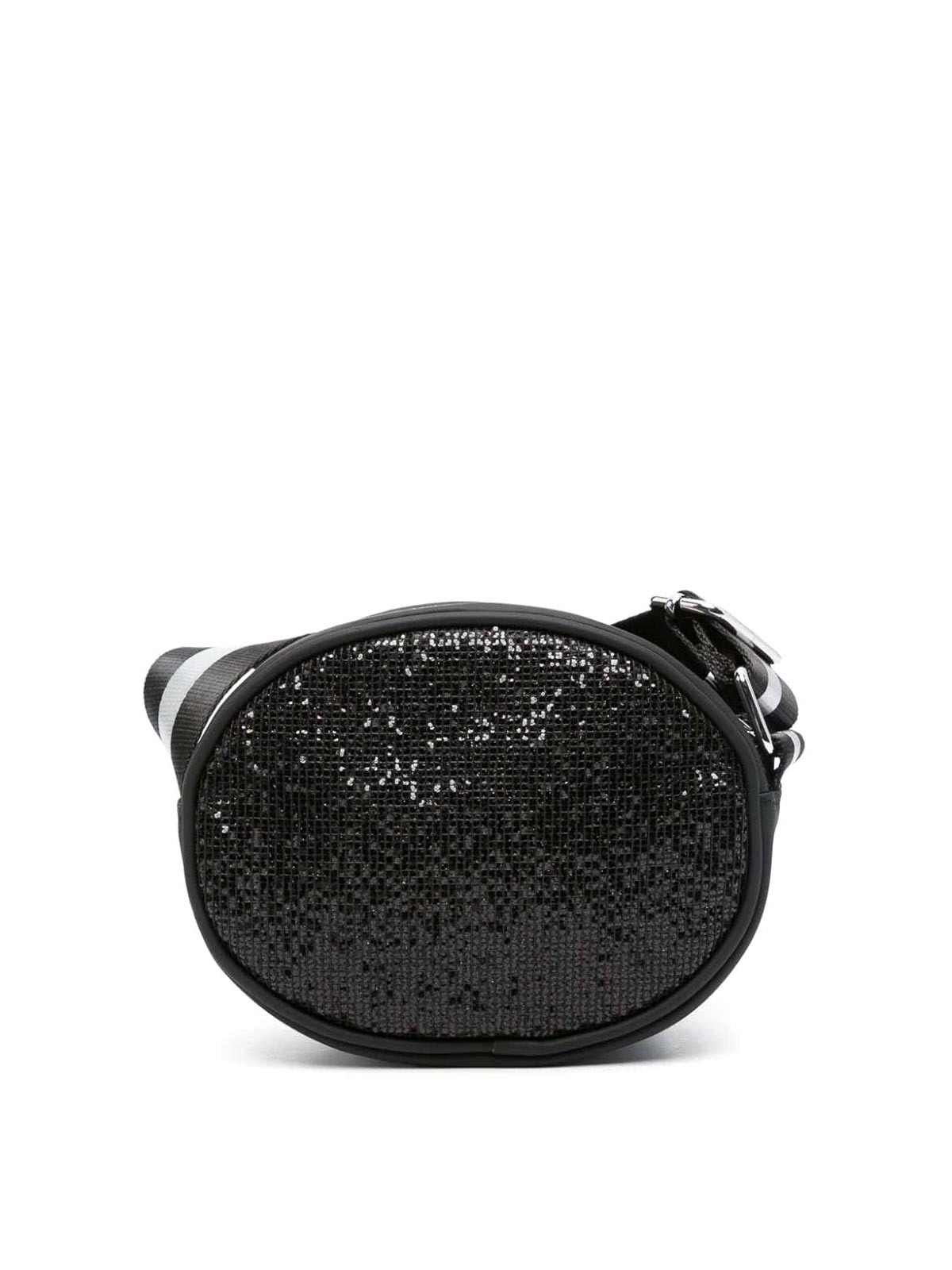 Dettagli neri profilati, logo sulla tracolla regolabile con dettagli rifiniti, toppa con logo sulla cinghia stampata sullo scomparto principale, toppa con logo completa, zip superiore in tono con hardware