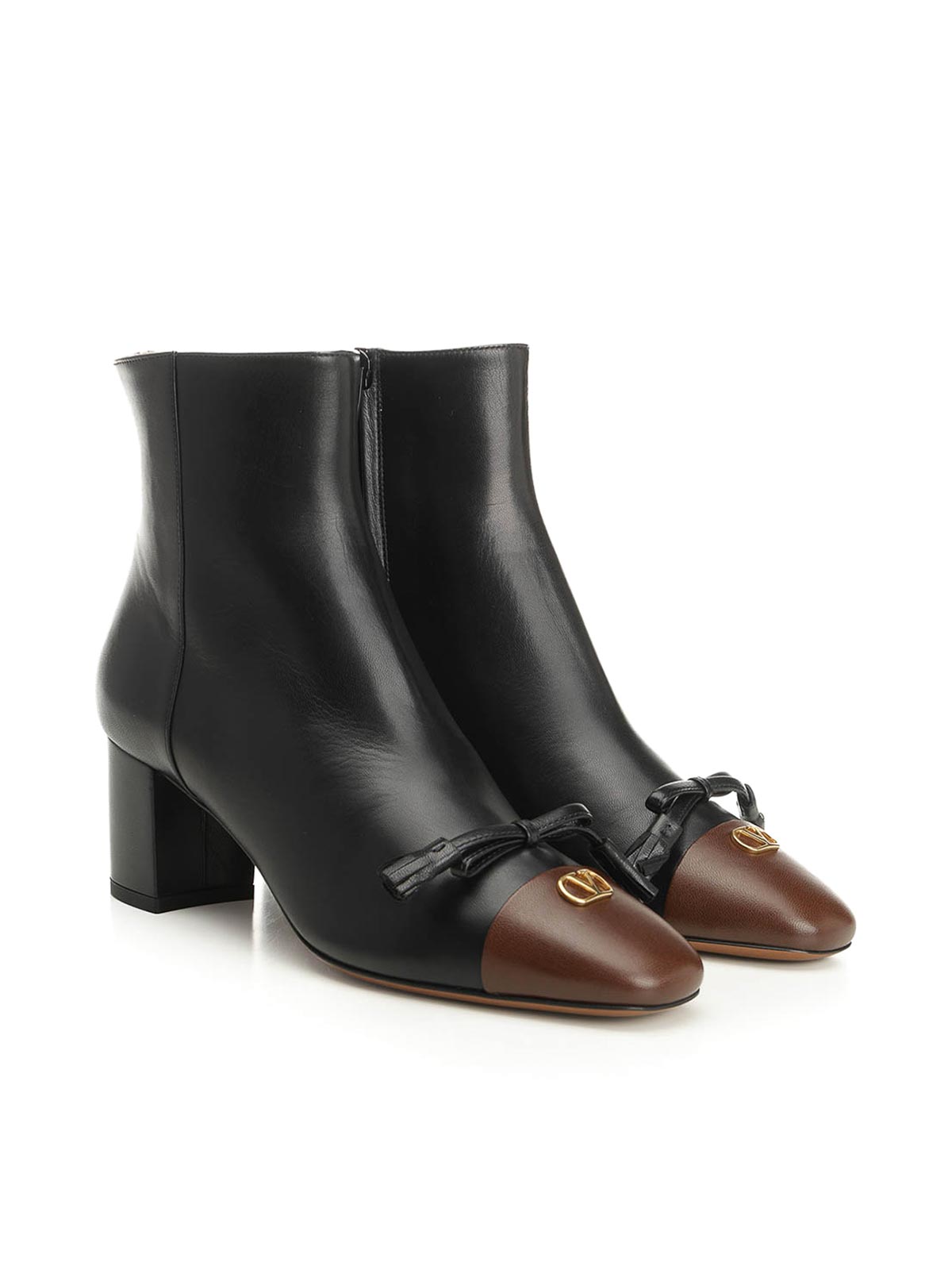 Stivaletto valet du roi Valentino Garavani in due tonalità, vlogo in capretto tono su tono con fiocco finitura anticata con nappine zip laterale