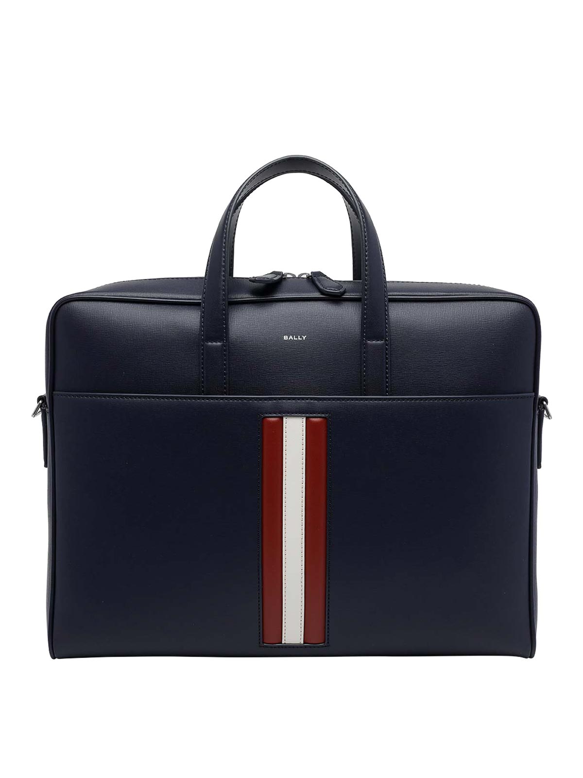 Cartella Mythos Bally nera, chiusura con zip, 2 tasche interne aperte, 2 scomparti, portapenne, tasca esterna, tracolla adattabile e removibile, logo frontale, 2 manici