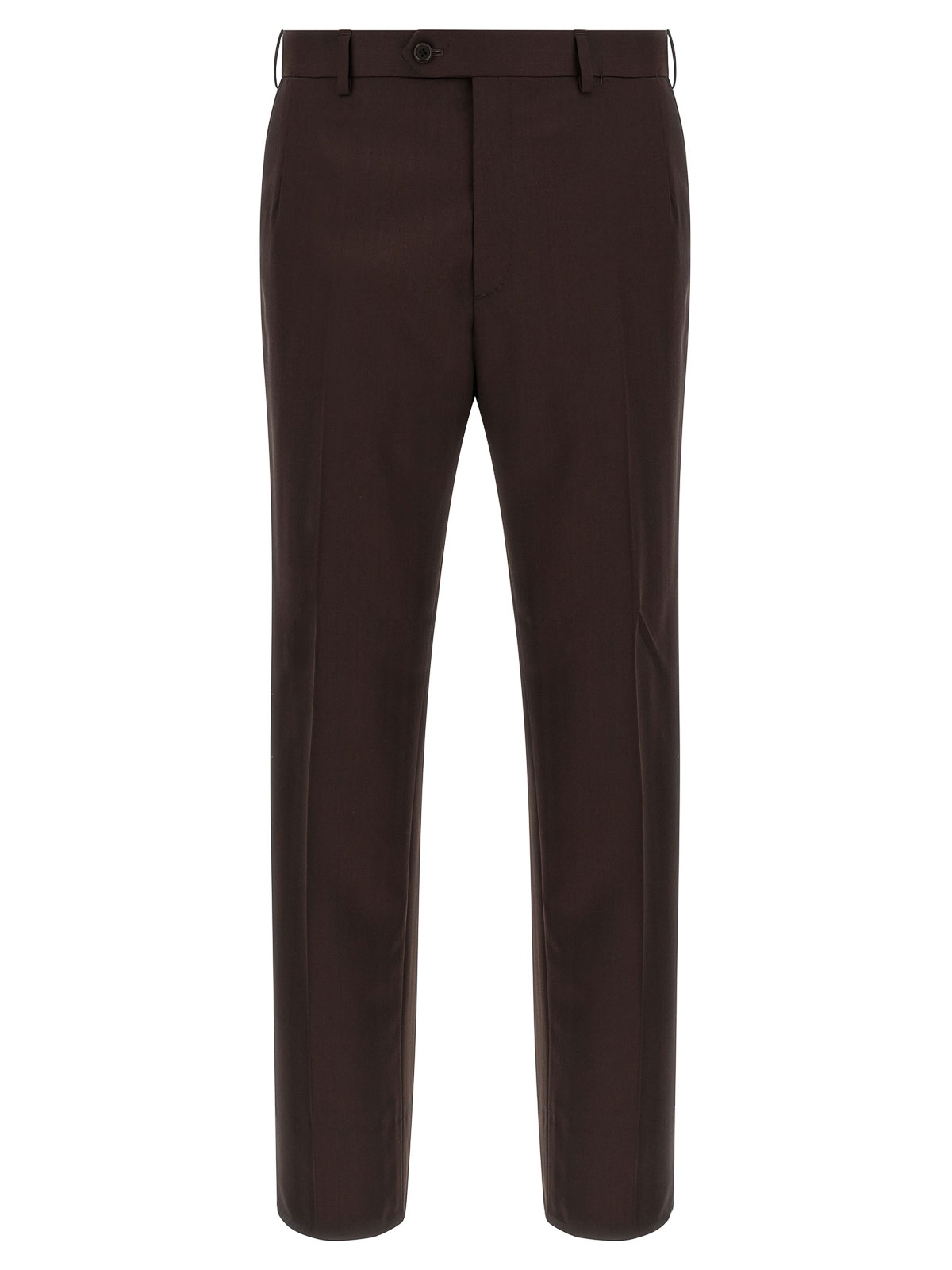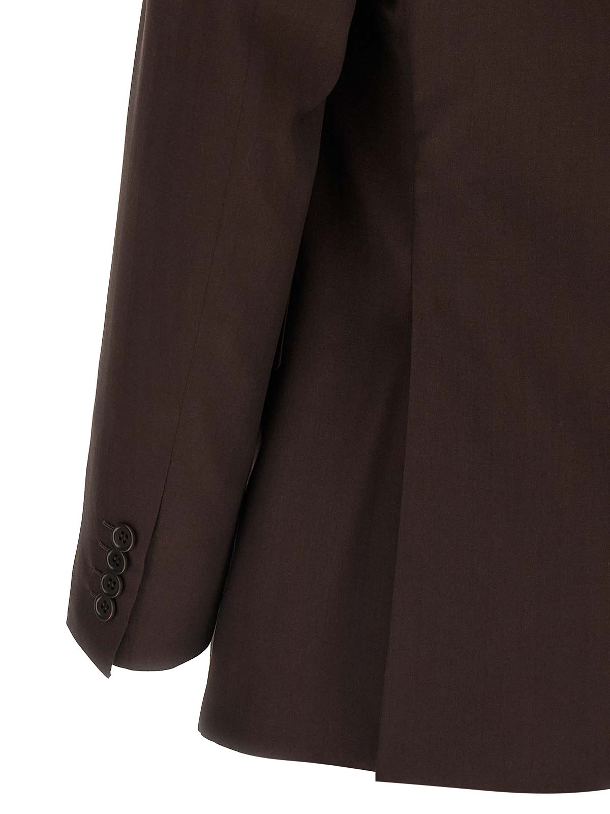 Vestito in lana super 150s 'brunico' fantasia spina di pesce con lavorazione tutta fatta a mano composto da giacca monopetto con chiusura a due bottoni frontali, revers a dente, taschino sul petto, tasche con pattina, fodera in cupro, tre tasche interne, tracolla strutturata leggermente imbottita, polsini con asole, spacchi posteriori, vestibilità regolare con costruzione più leggera del giromanica e pantaloni con piega elasticizzata. tasche anteriori all'americana, tasche posteriori a filetto, chiusura frontale con zip con gancio e bottone, fodera in viscosa.