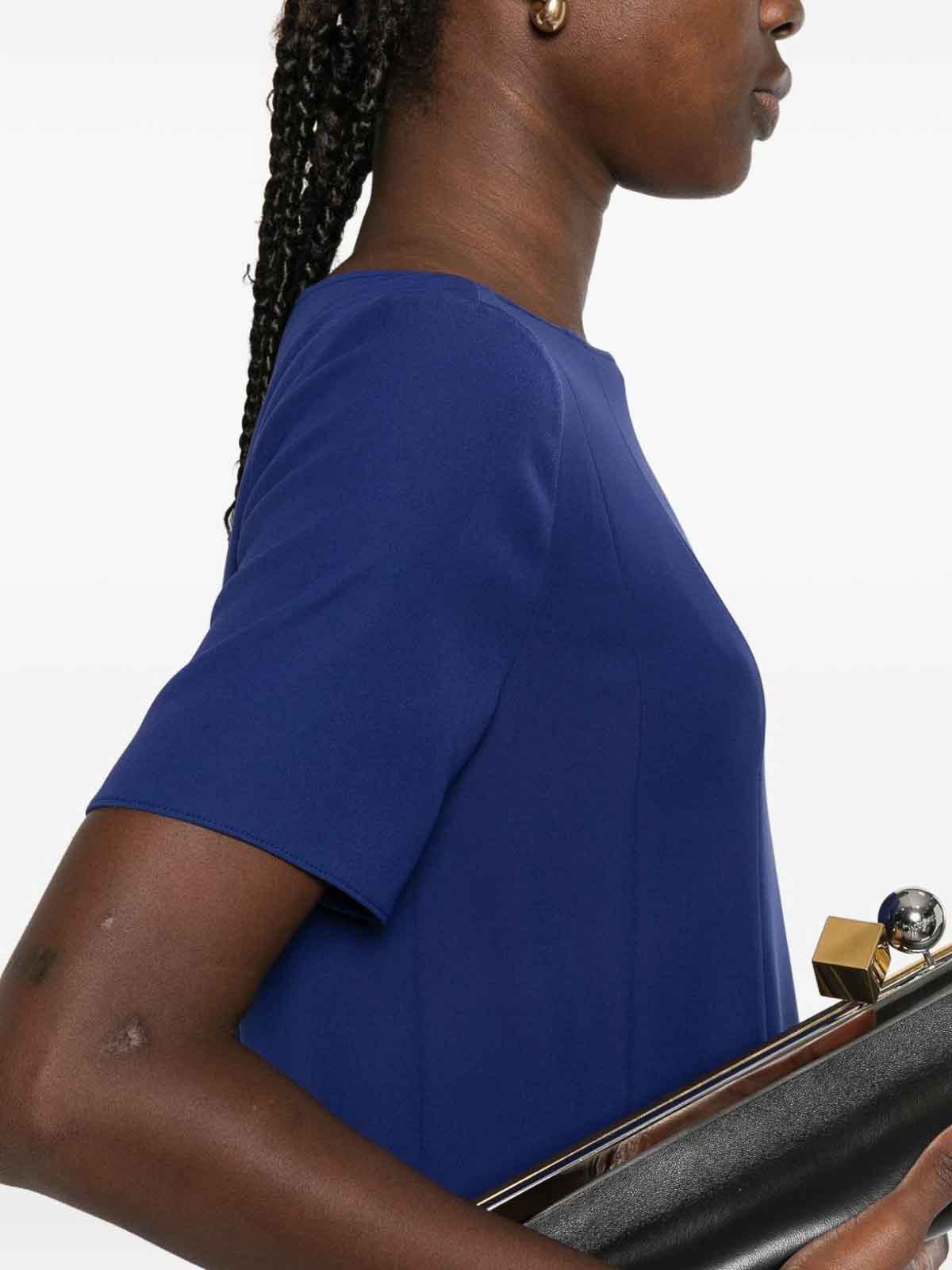 Gonna svasata blu royal a maniche corte con scollo a barchetta e chiusura con zip nascosta