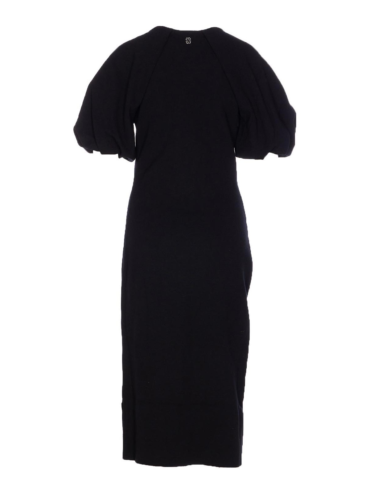 Abito Curiel nero, girocollo, maniche corte, maniche a palloncino, spacchetti laterali, modello midi