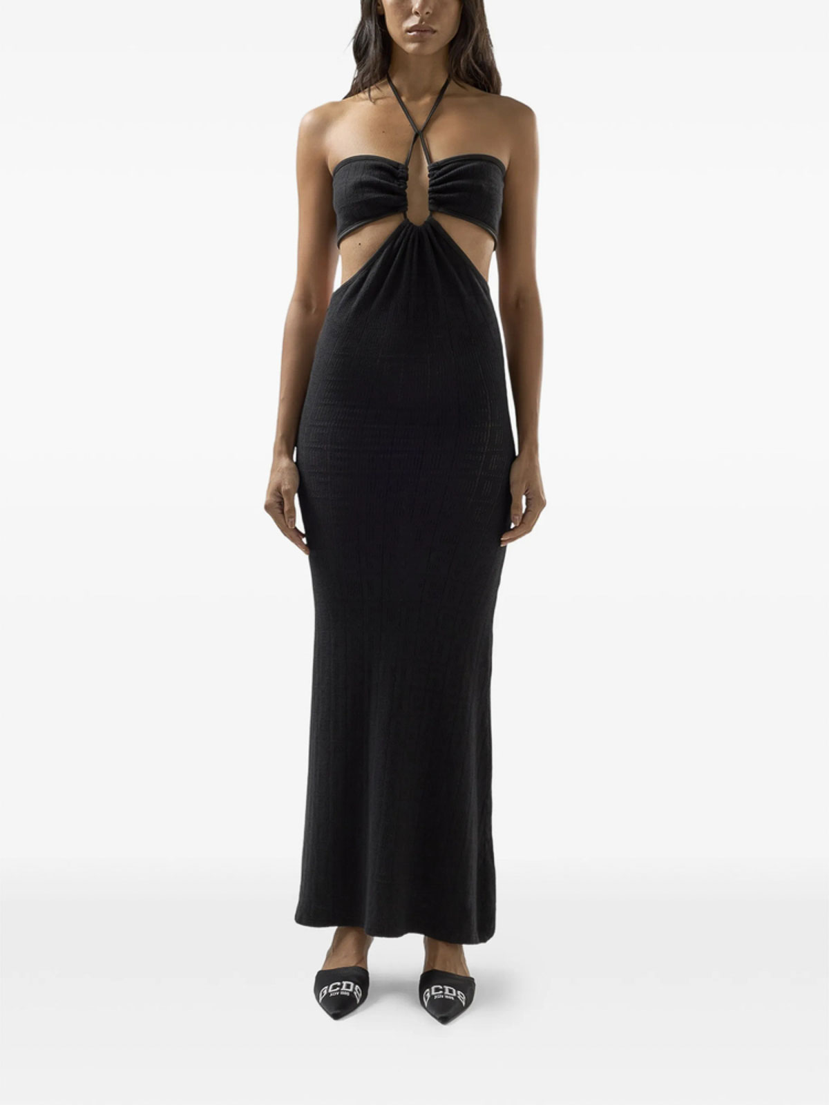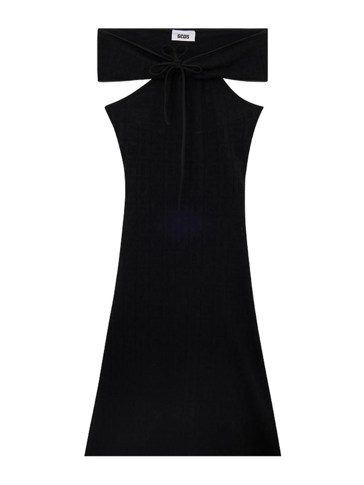 Lunghezza maxi dettaglio cravatta con dettaglio cut-out al collo nero