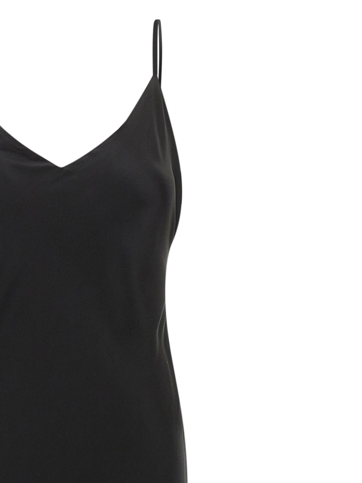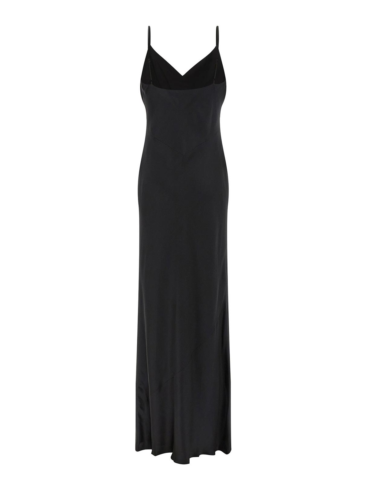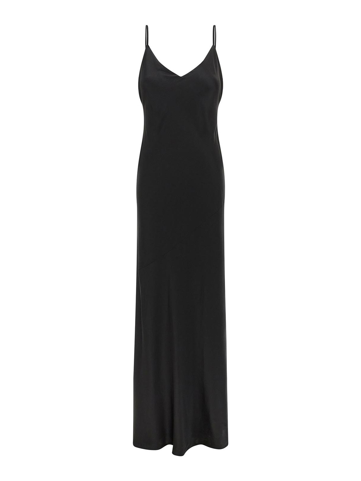 Vestito lungo 'serita' in charmeuse di seta, sottoveste dalla silhouette svasata, spalline regolabili, senza maniche, ampio scollo tondo davanti e quadrato dietro.