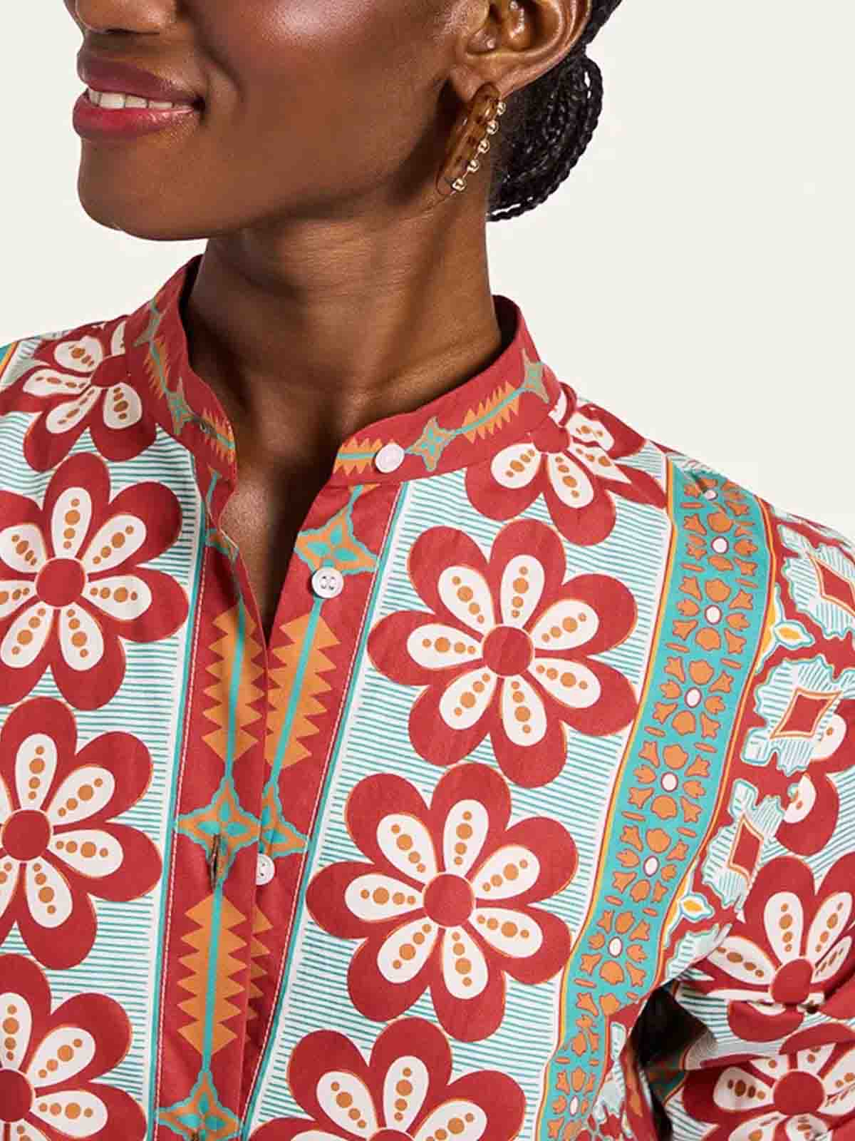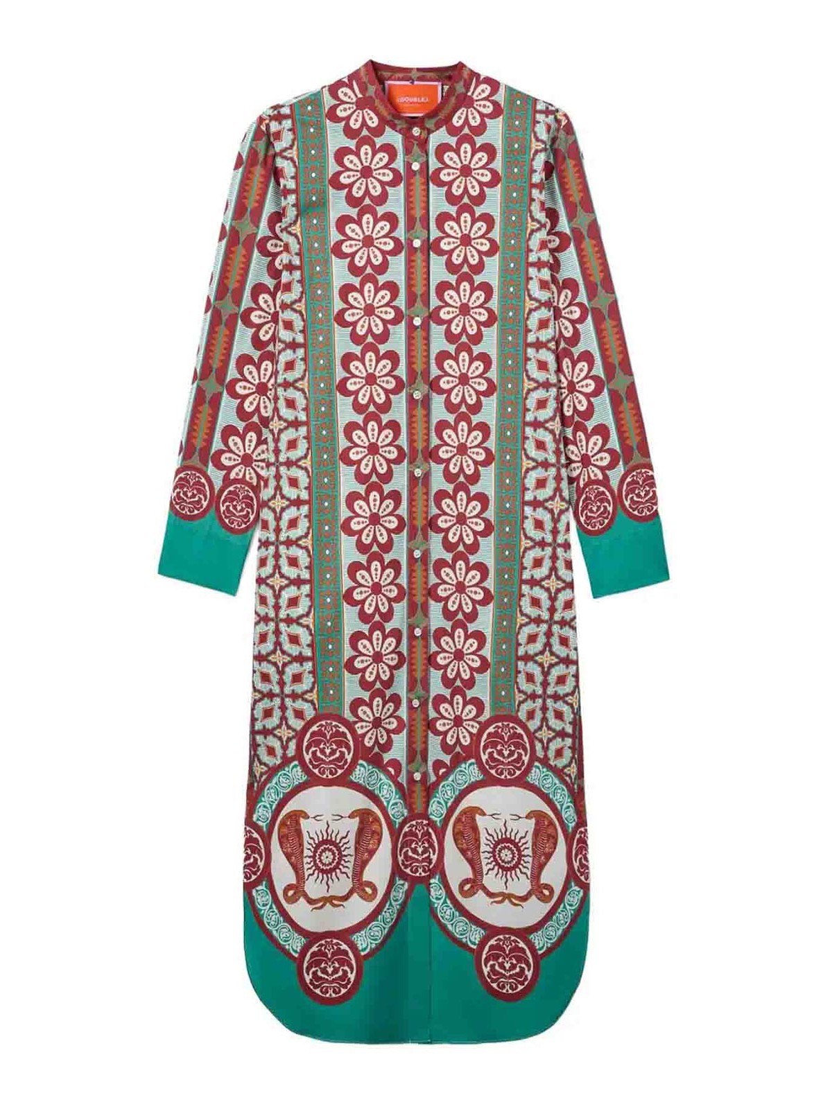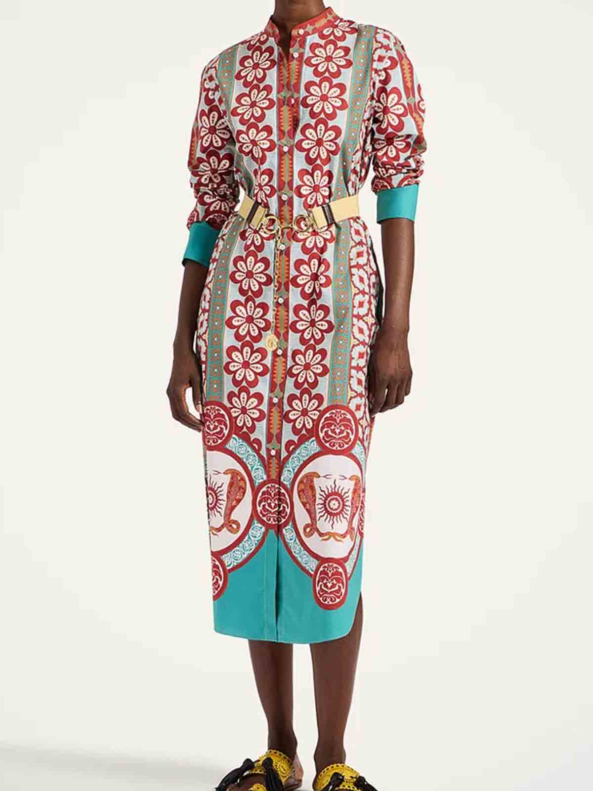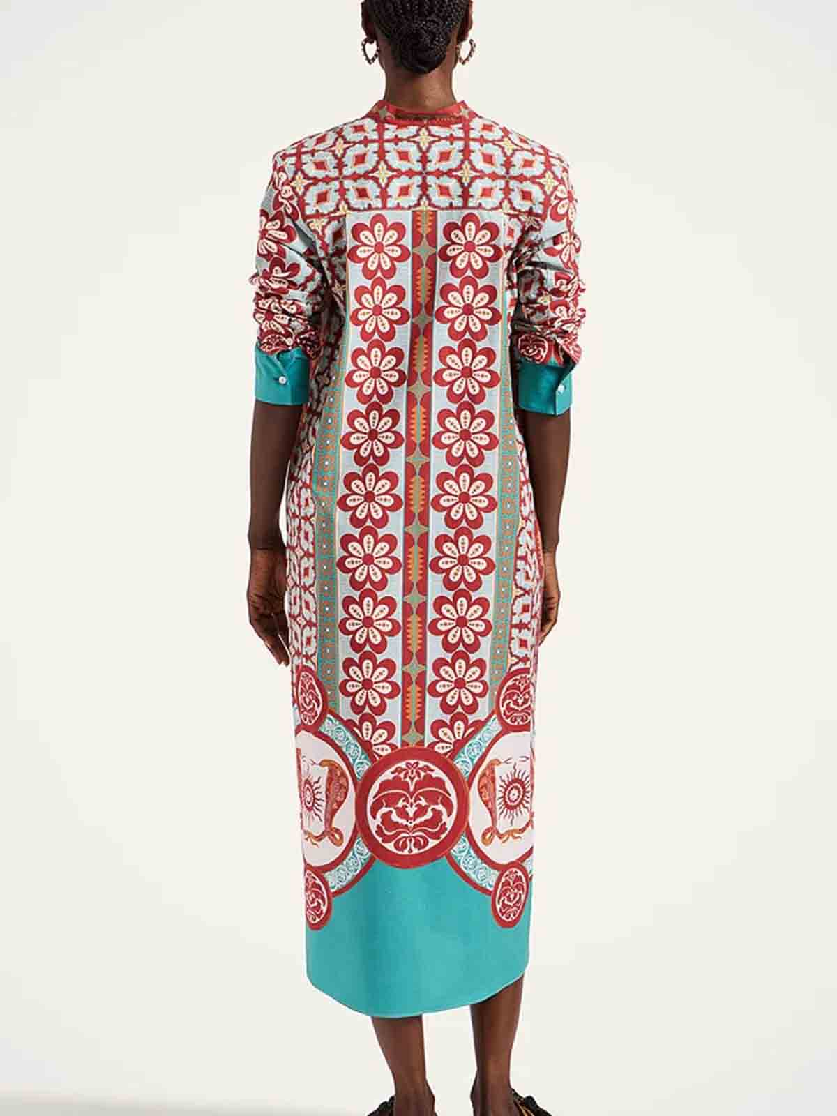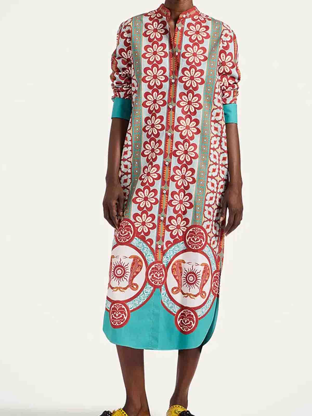 Popeline di cotone, abbottonatura completa davanti, motivo applicato, spacchetti laterali, maniche lunghe, tasche laterali nascoste, lunghezza alla caviglia. composizione 100% cotone prodotto in italia