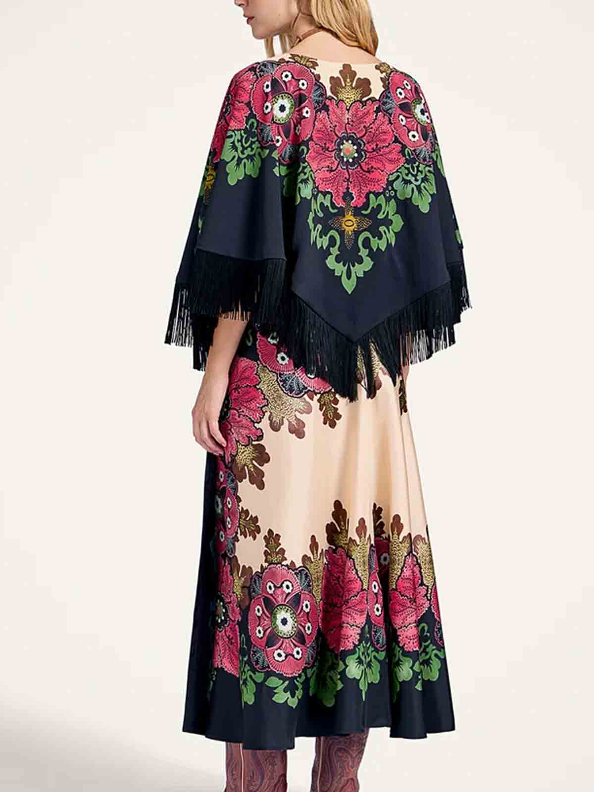 Vestito a portafoglio in seta con silhouette avvolgente e lacci laterali, design stampato, lunghezza media. composizione: 100% seta made in Italy