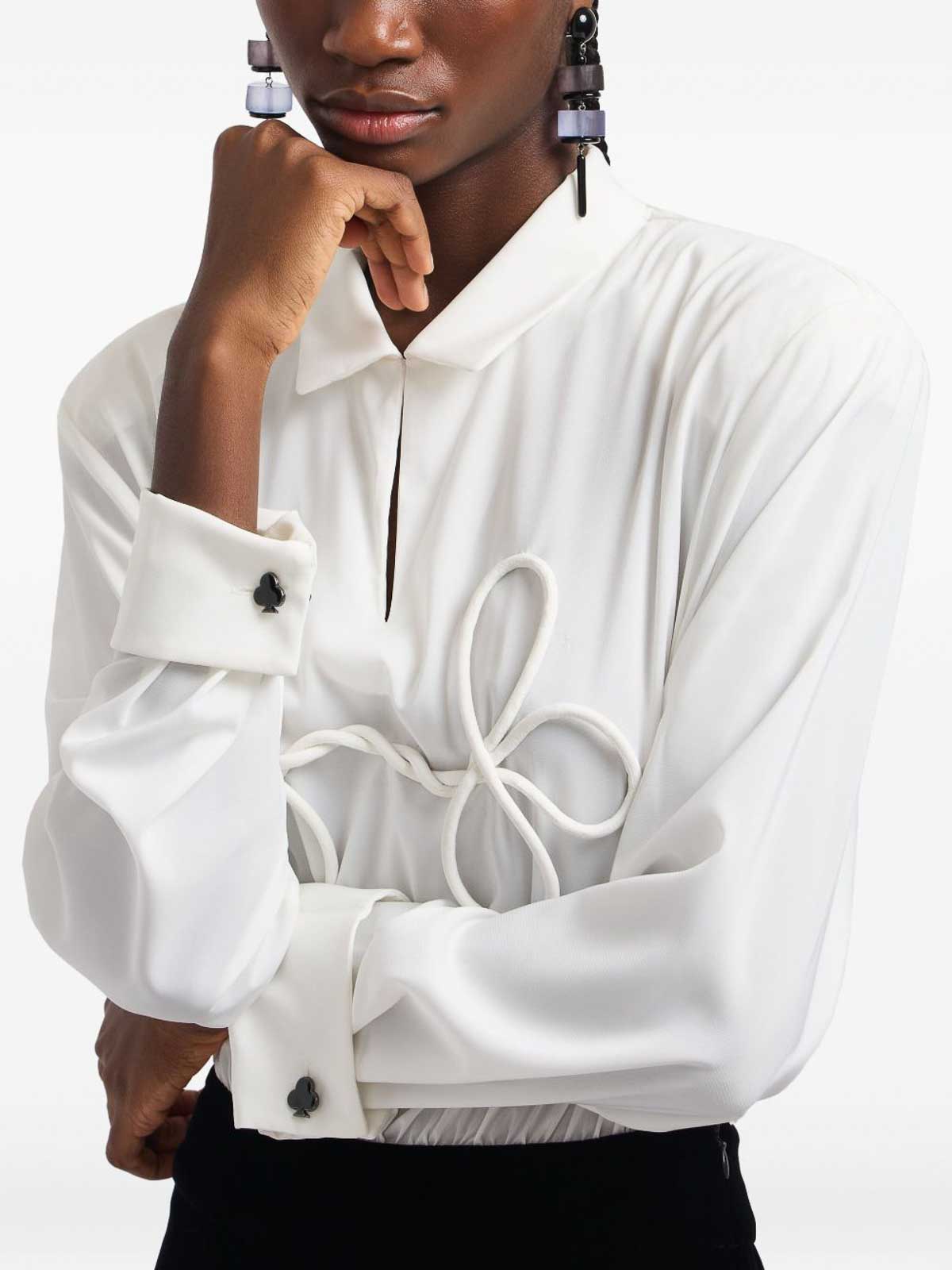 Fuori, gonna bianca avvolgente, intorno alla gonna in corda a maniche lunghe colletto classico
