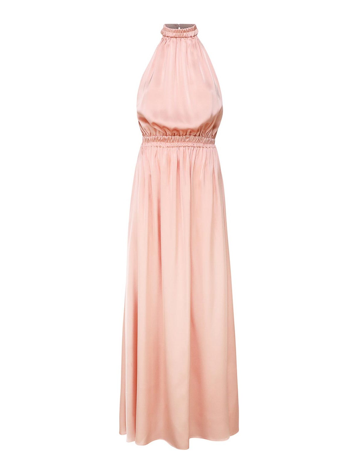 Vestito lungo con collo alto elastico in vita gonna lunga fluida color pesca