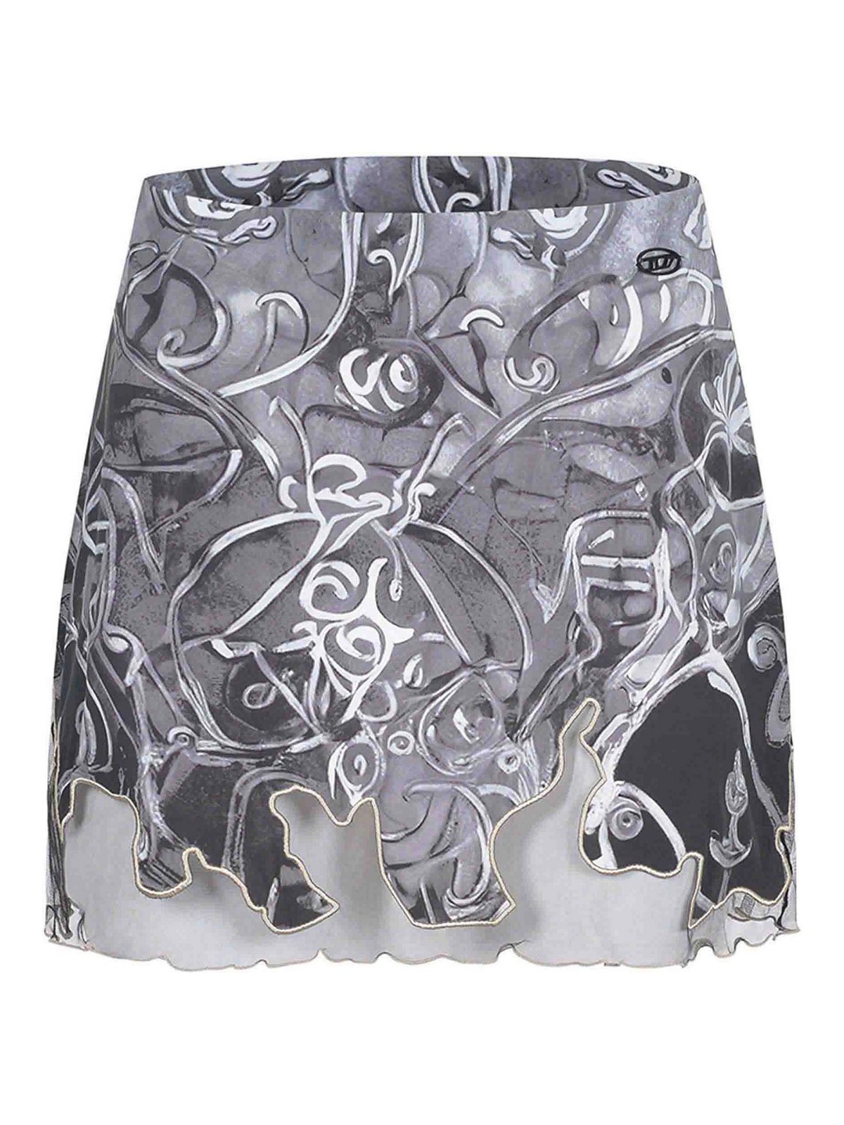 Abito Diesel realizzato in misto nylon di colore grigio. elastico. cintura elastica. modello contrastante. orlo in tulle semitrasparente. 77% nylon 23% elastan.