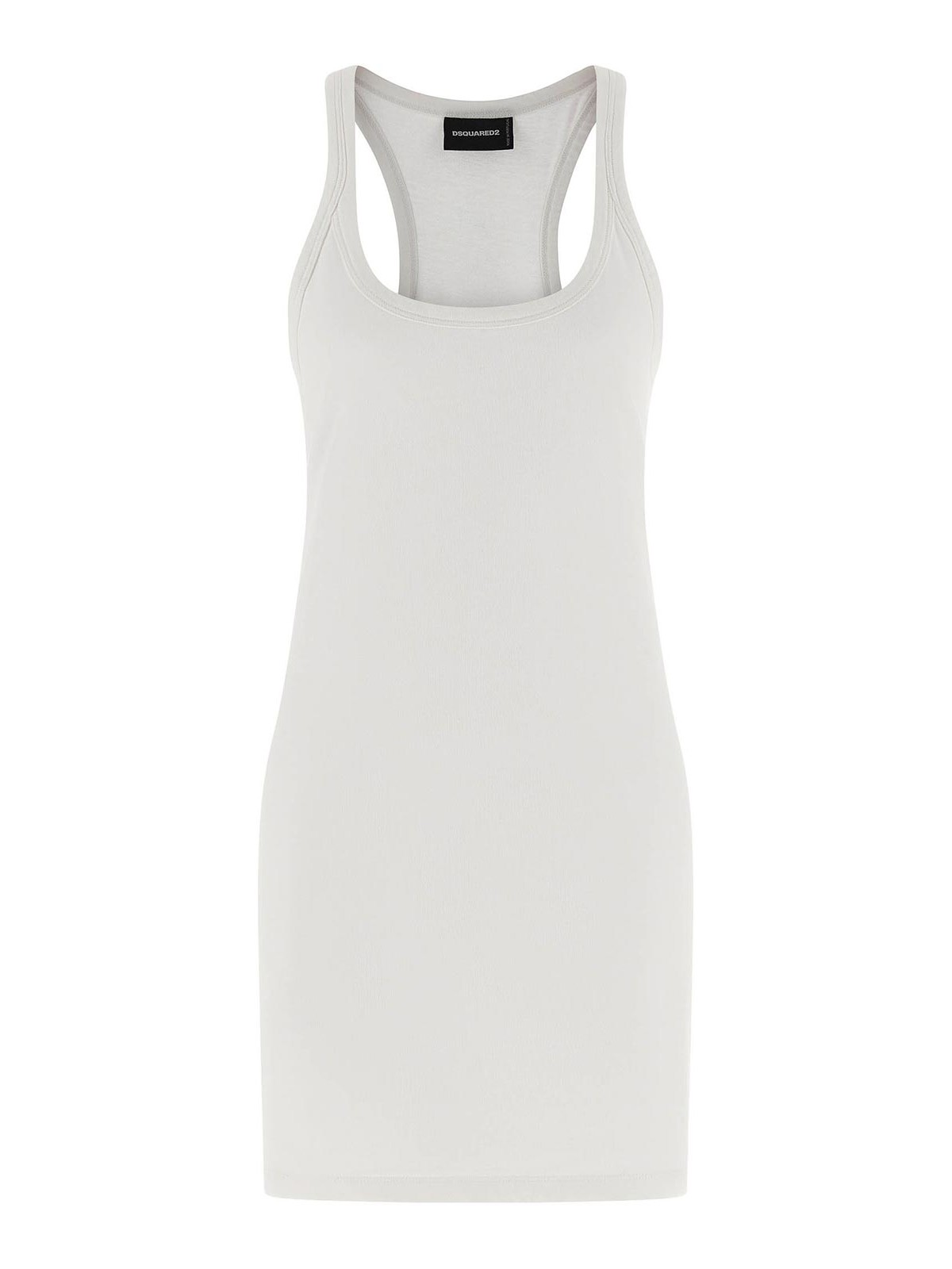 MiniVestito a canotta in cotone a coste 'sexy' con ricamo logo frontale a contrasto, scollo tondo.