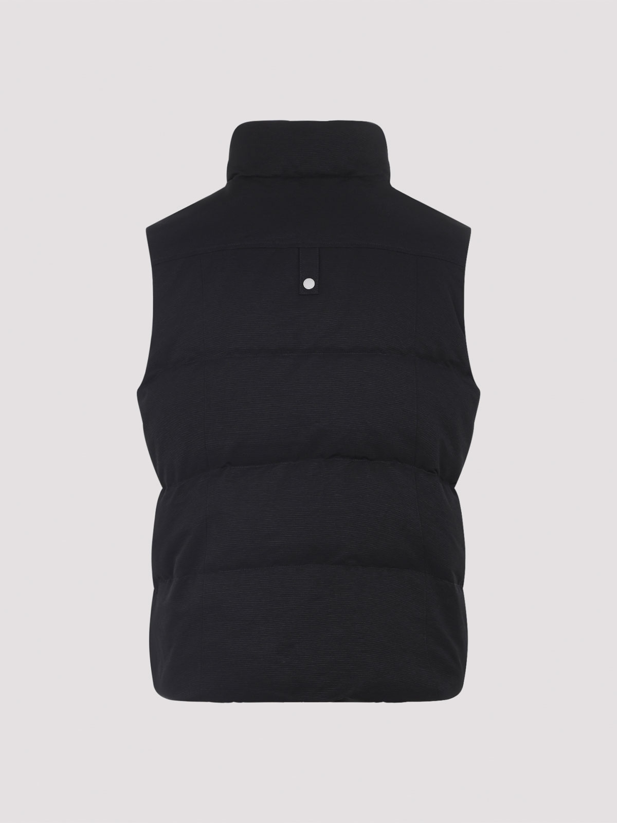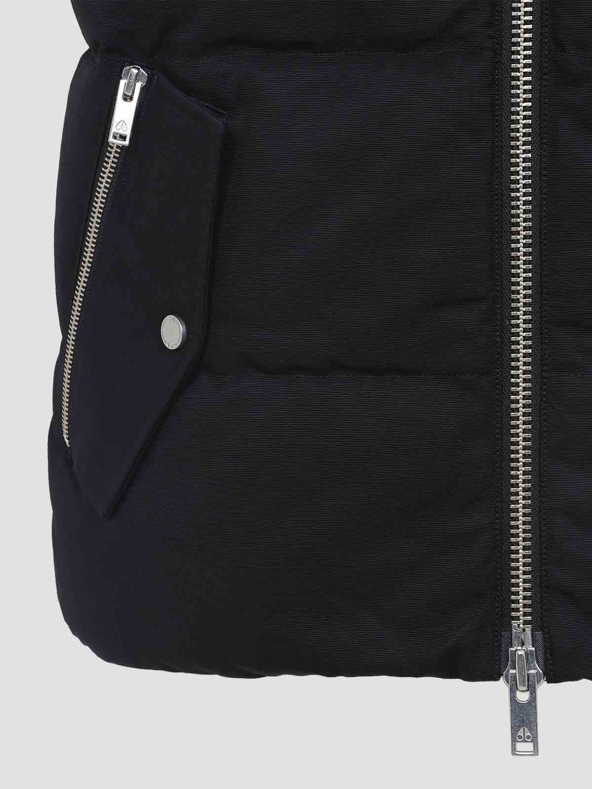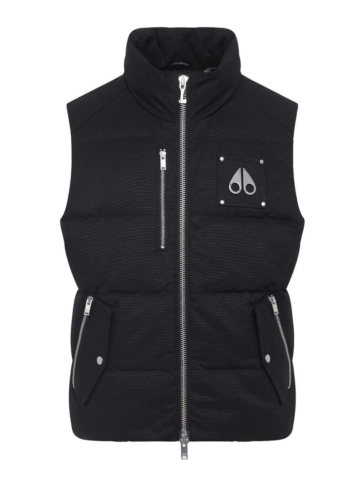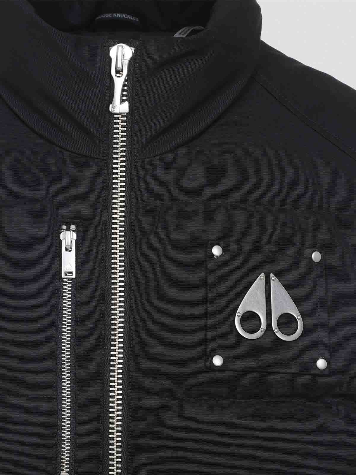 Moose Knuckles Westmount Tone Gilet nero Craumato con tasca con zip a motivazione nera e trapuntata sul torace zip e tasche a flap sulle due patch logo zip sul petto, riempito