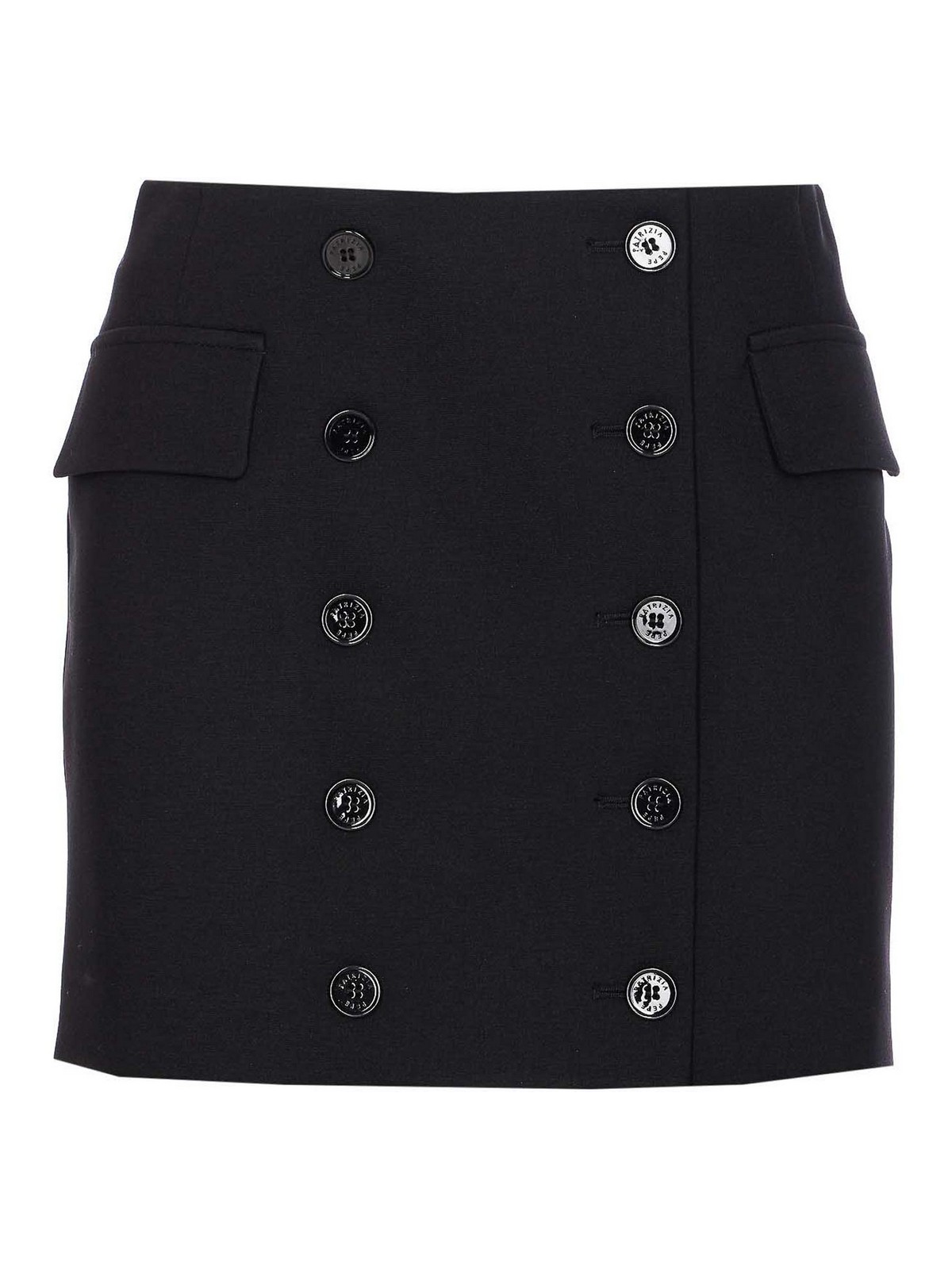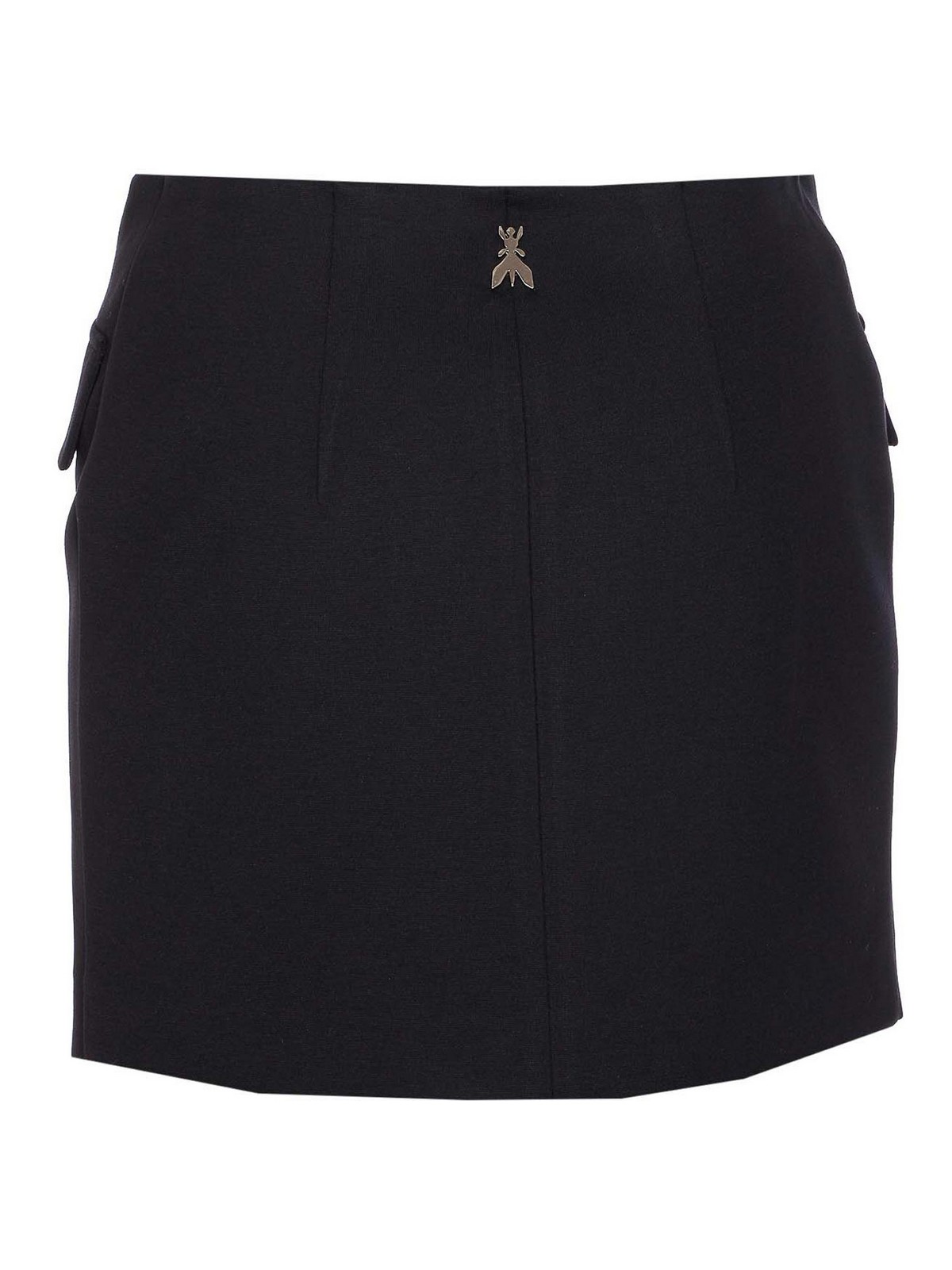 PATRIZIA PEPE Mini gonna nera, chiusura raddoppiata, tasche frontali, logo posteriore