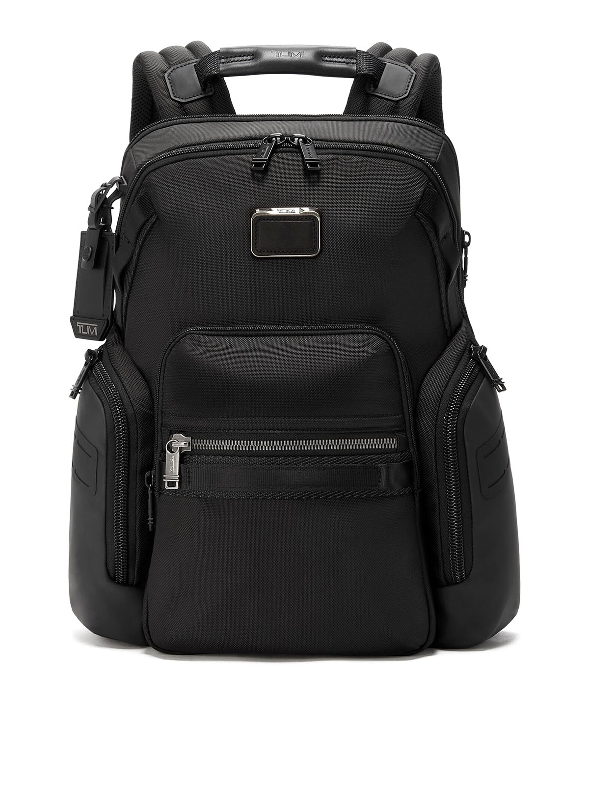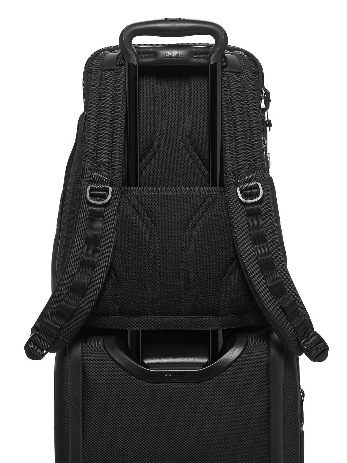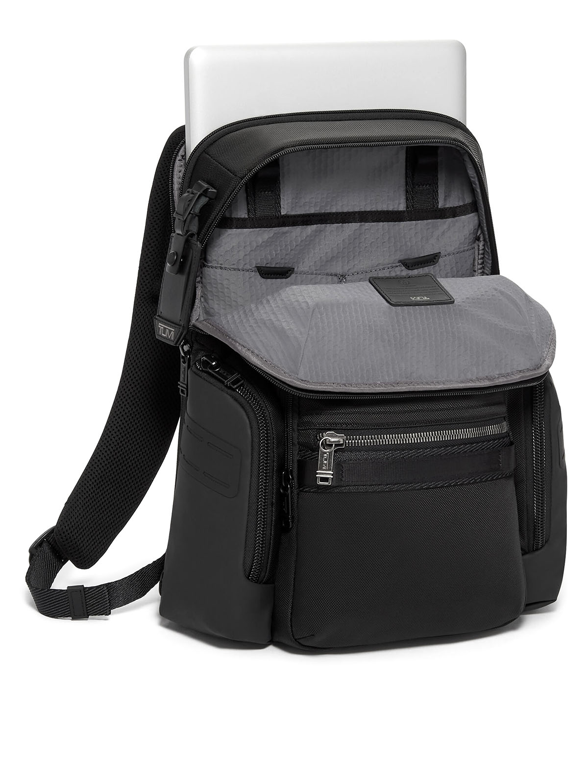 Zaino con espansione a cerniera e tasche per il computer e il telefono.