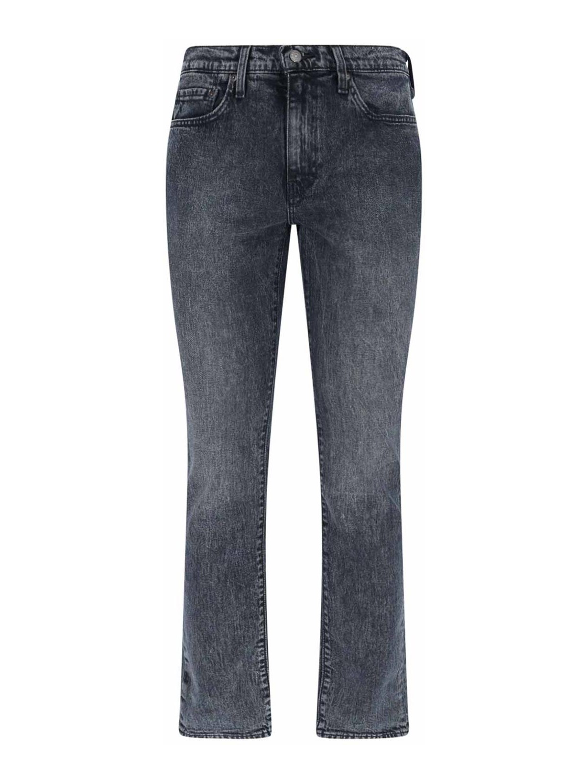Levi's Strauss 511 スリムジーンズ、ブラックデニム、ウォーンウォッシュ、ローウエスト、ベルトループ、ボタンとジッパー、5ポケットデザイン、背面ロゴラベルのディテール、背面ロゴパッチ、ストレートレッグ。