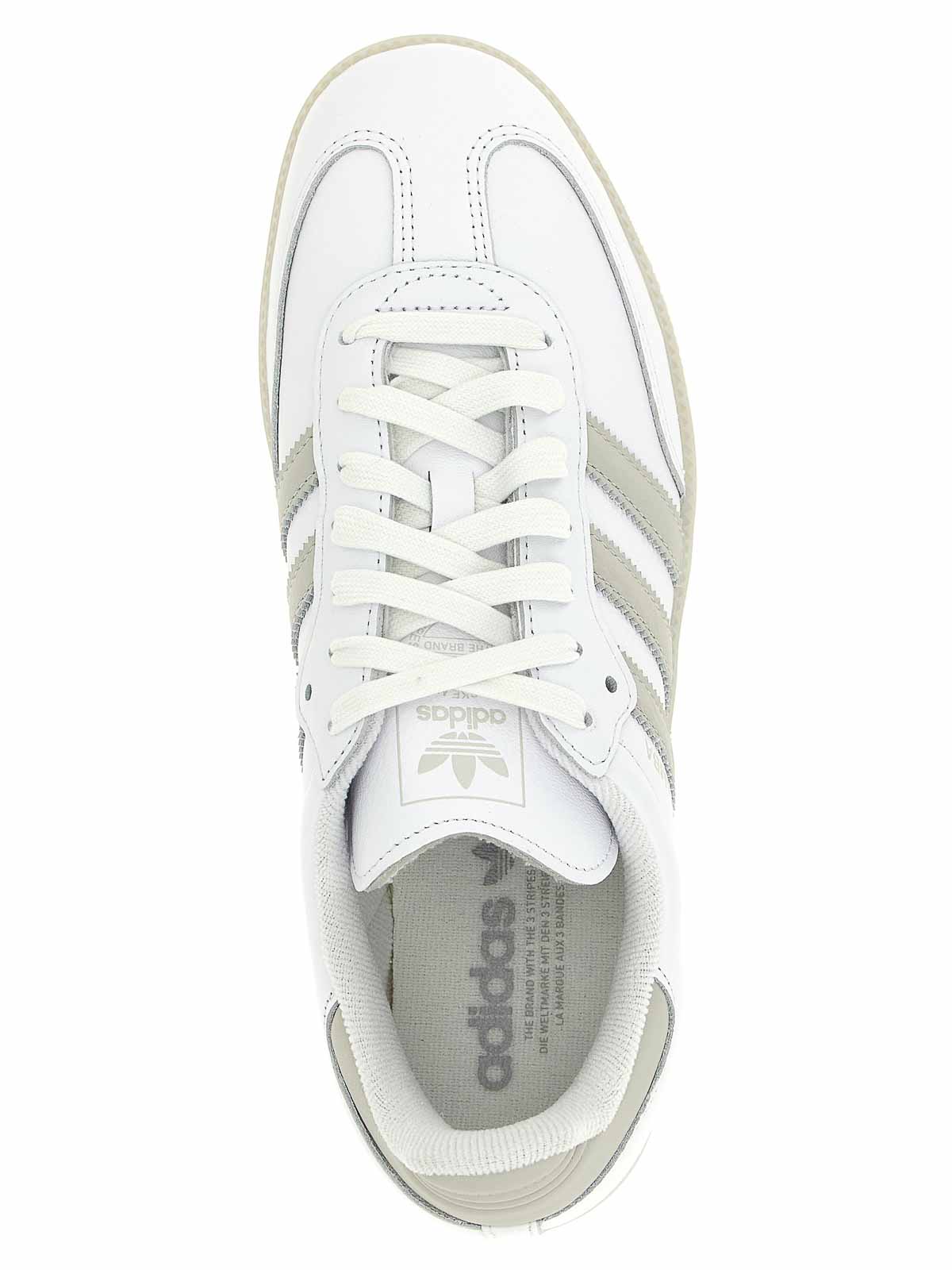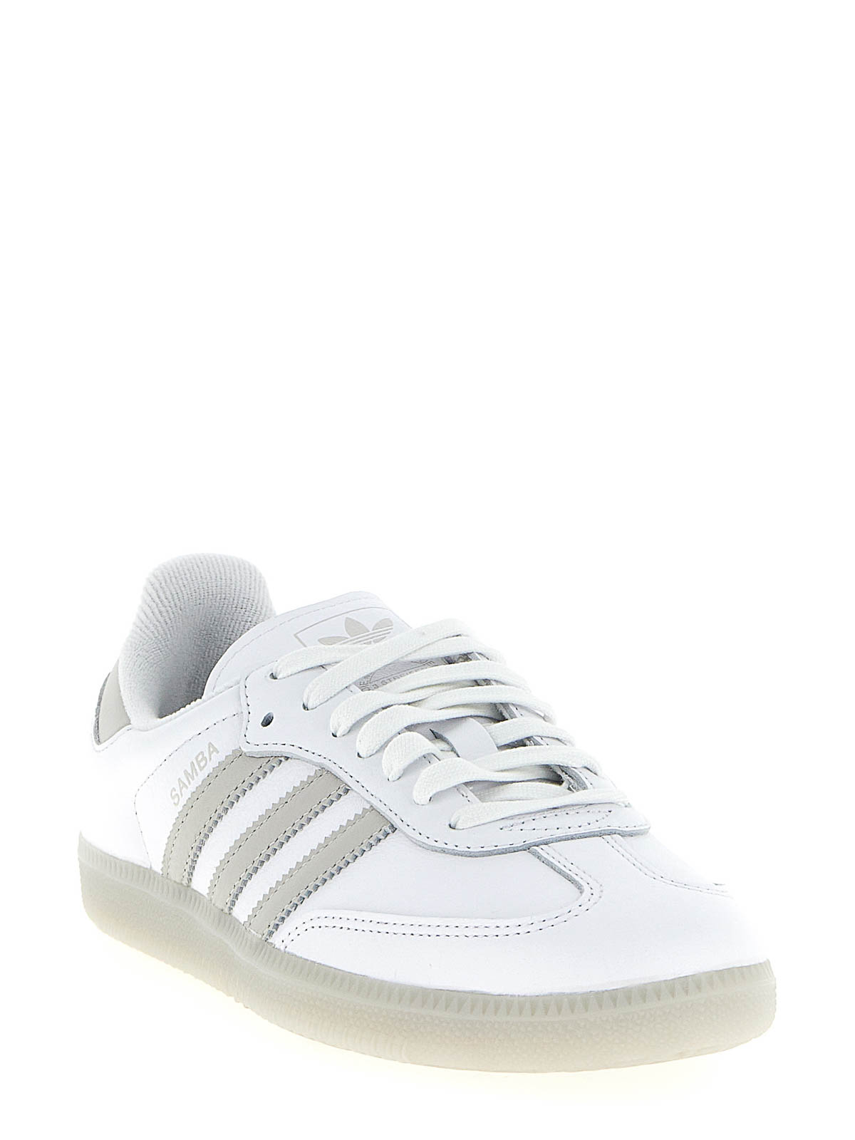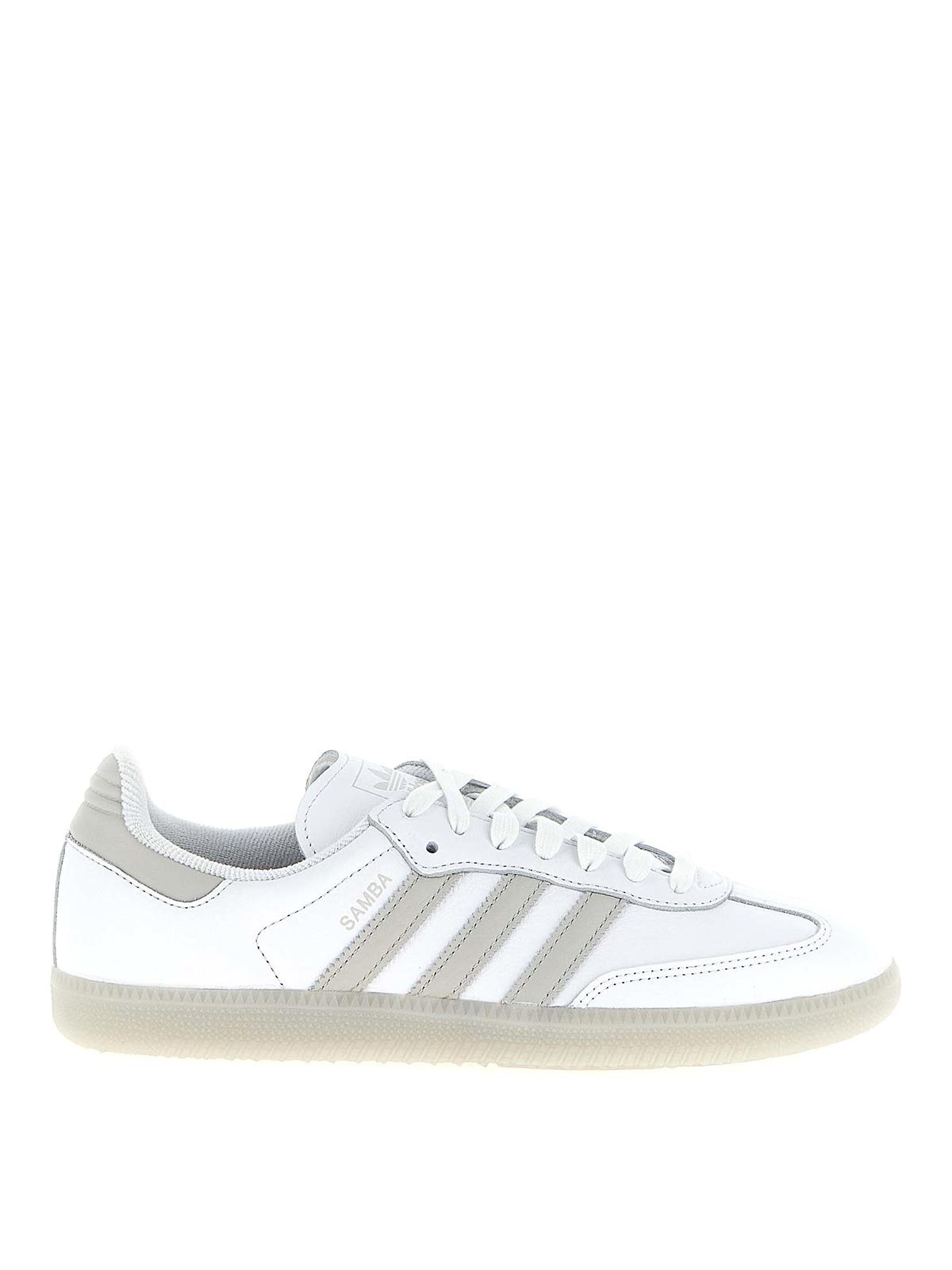 コントラストカラーのディテールが施されたサンバオッグレザースニーカー、スエードトウ、レースアップクロージャー、ラバーソール。