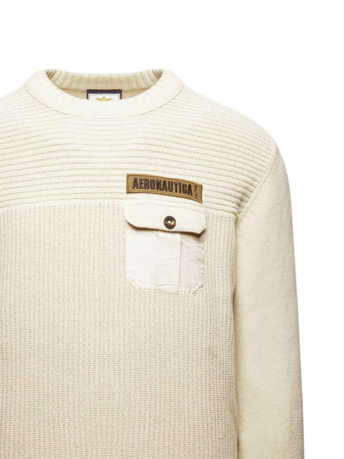 Aeronautica ミリタリーシェニールクルーネックセーター、ポケット付きメンズクルーネックセーター。衣服で染めたシェニールで作られた、柔らかくコクのある質感が特徴です。胸元は交互に向きを変え、袖と背中にはストッキネットステッチを施したさまざまなイングリッシュリブの仕上がりがダイナミックで現代的な視覚効果を生み出しています。ギャバジンのパッチポケットとパーソナライズされたロゴが付いたパッチは、ガーに技術的で独特なタッチを加えています。着心地とスタイルの絶妙なバランスを実現したこのシャツは、洗練されたカジュアルルックにぴったりです。柔らかくコンパクトな手触りで染められたシェニール織りのミッドシーズン服に洗練されたチョイス、立体感のあるイングリッシュリブニットとストッキネットステッチ、胸にパーソナライズされたロゴが入ったテクニカルパッチ付きのギャバジンポケット、厚くて暖かい構造、ミッドシーズンに最適、技術的なインスピレーションを取り入れた洗練されたカジュアルスタイル